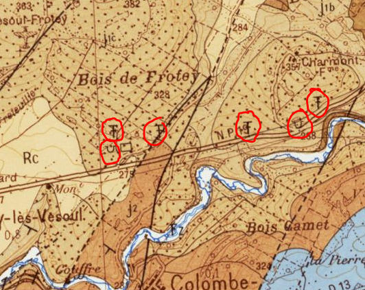 Petite précision : les anomalies géochimiques sont indiquées par un numéro + un gros point noir sur la carte. S'il y a un numéro + un autre figuré que le point, ce n'est pas qu'une anomalie géochimique !
