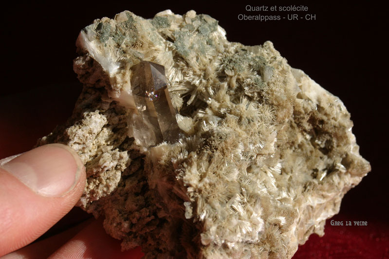 photo du jour : une pièce de scolécite et quartz fumé du Schjienstock - Oberalppass - UR