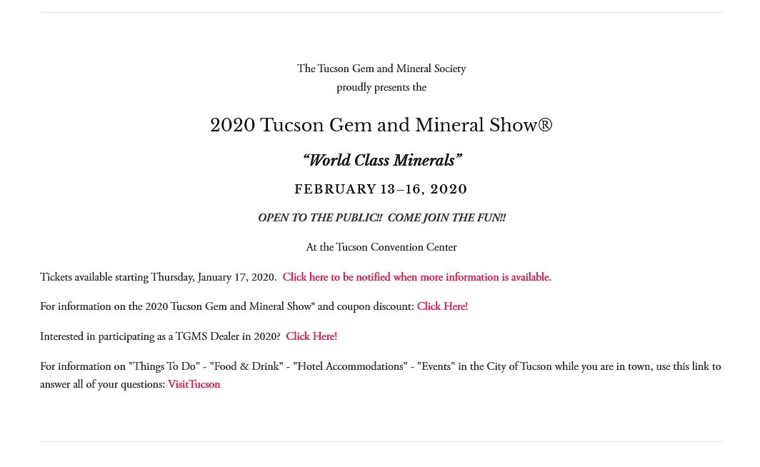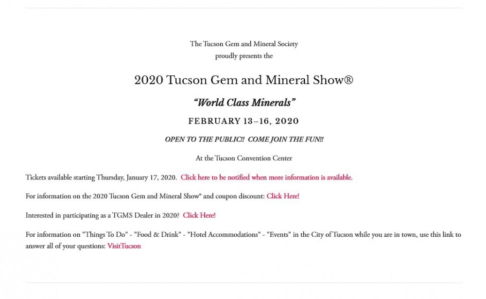 - "Tucson Gem and Mineral Show (TGMS ou Main Show)", du