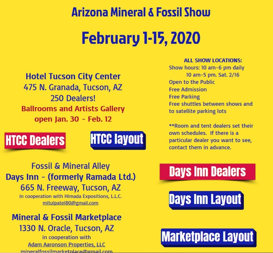 Sans oublier les autres innombrables autres shows, tels que "Mineral & Fossil Marketplace" (1330 North Oracle Road), "Fossil & Mineral Alley"