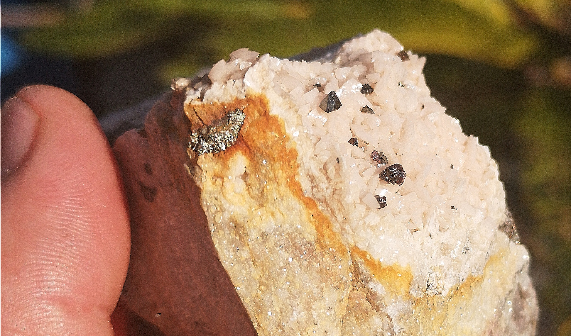 Et cette fois ci nous tomberont sur des pyrites, des sphalerite, et quelques rare quartz très brillant et transparent posé sur de la dolomite blanche, nous sommes comme des petits fous la journée est extra pour nous. Alors je sais pour en avoir vu chez certains amis collectionneurs qu'en taille ça n'a rien à voir avec ce qui a pu s'y trouver quand la carrière était encore en activité, mais pour nous ce sont de petits trésors et en prime nos trouvailles familiales.