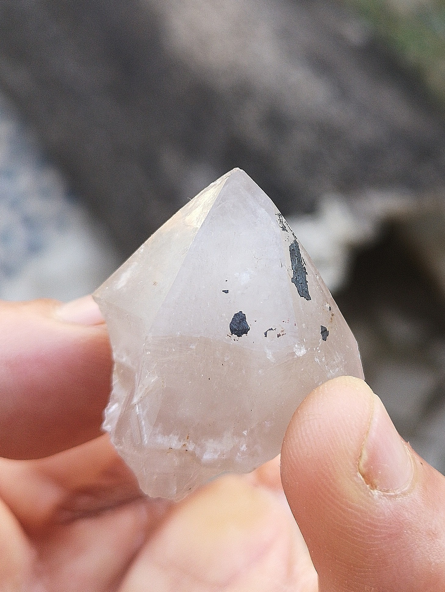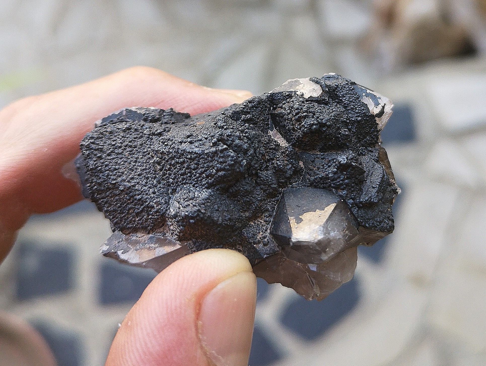 Nous aurons aussi eu le plaisir de trouver quelques jolis quartzs des fois en association avec de la geotite et de la fluo.