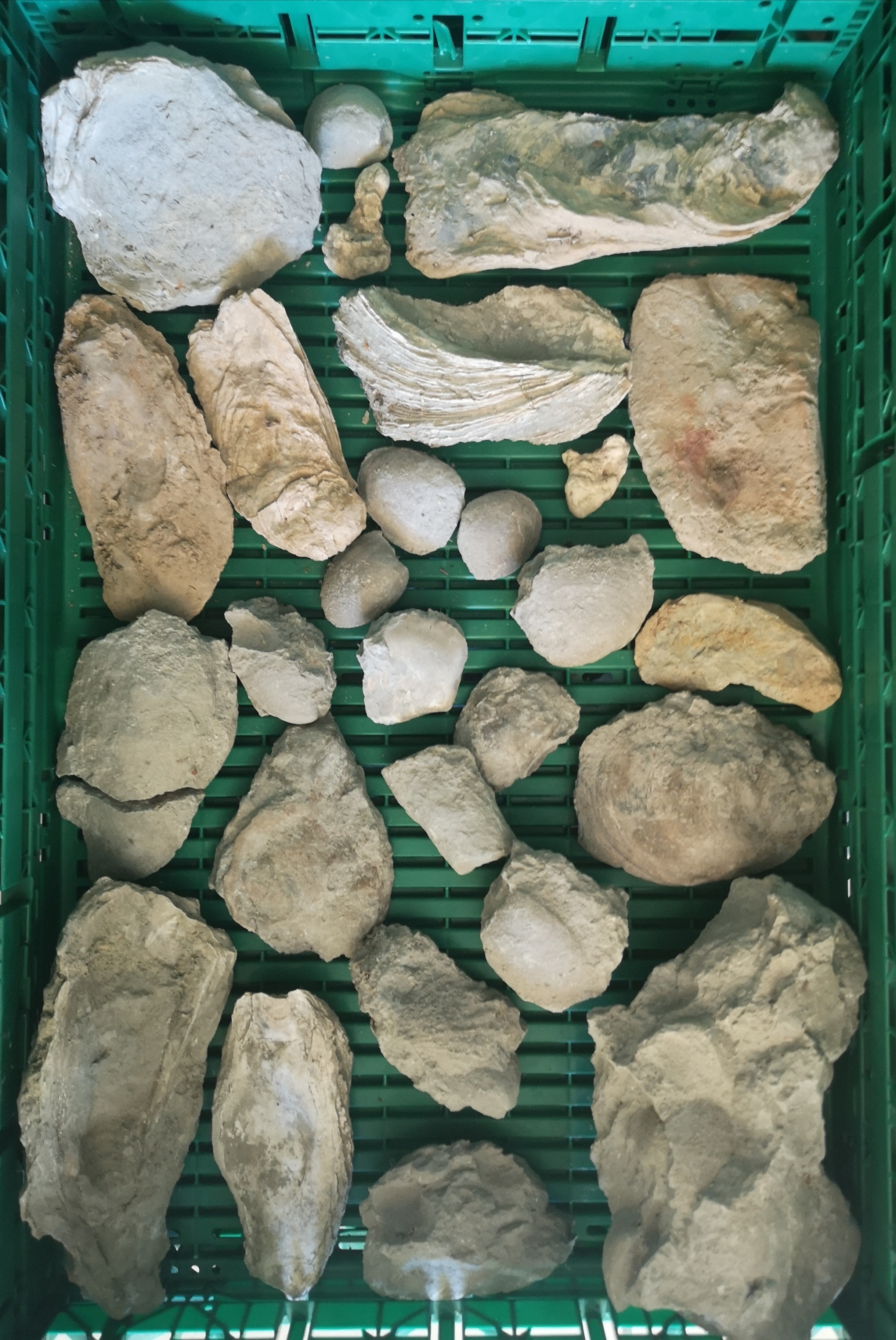 Bivalves, huîtres, et par chance une dent de requin, et un os