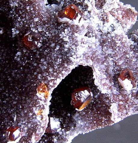 Comme le post d'Evelyne se tasse un peu, je relance avec une de mes photos (cristaux microscopiques??) de blende de NOILHAC SAINT SALVY, =le filon dans son jus, pur fruit pur sucre, comme vous auriez pu le voir en 1982.