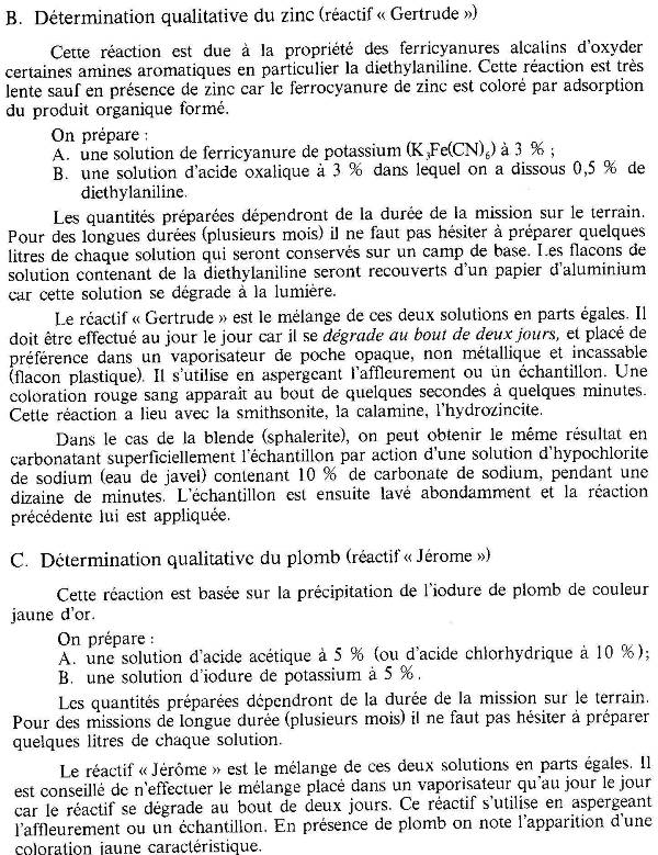 La recette est dans le Manuel du Prospecteur Minier de Jean Luc CHAUSSIER, coll. Manuel et Methodes, BRGM, vers 1982. Je la chercherai au bureau. Comme un sujet GALENE vient de démarrer, ce sera l'occasion de parler du JEROME, grace auquel les traces de plomb virent au jaune canari.
