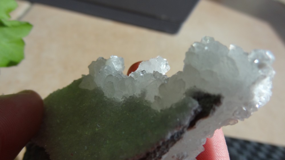 Il y a quand même un problème de prise de vue, c'est une question de distance, pour la netteté, on voit que ce qui est net, ce sont les extrémités, si tu éloignes ton appareil, les petits cristaux incolores sur la plaque, seront nets.