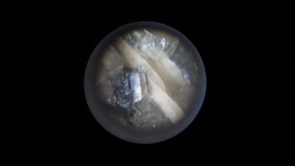 Voici un exemple de photo que j'ai pu prendre. Essayer de deviner les deux minéraux présents sur la photo.;)