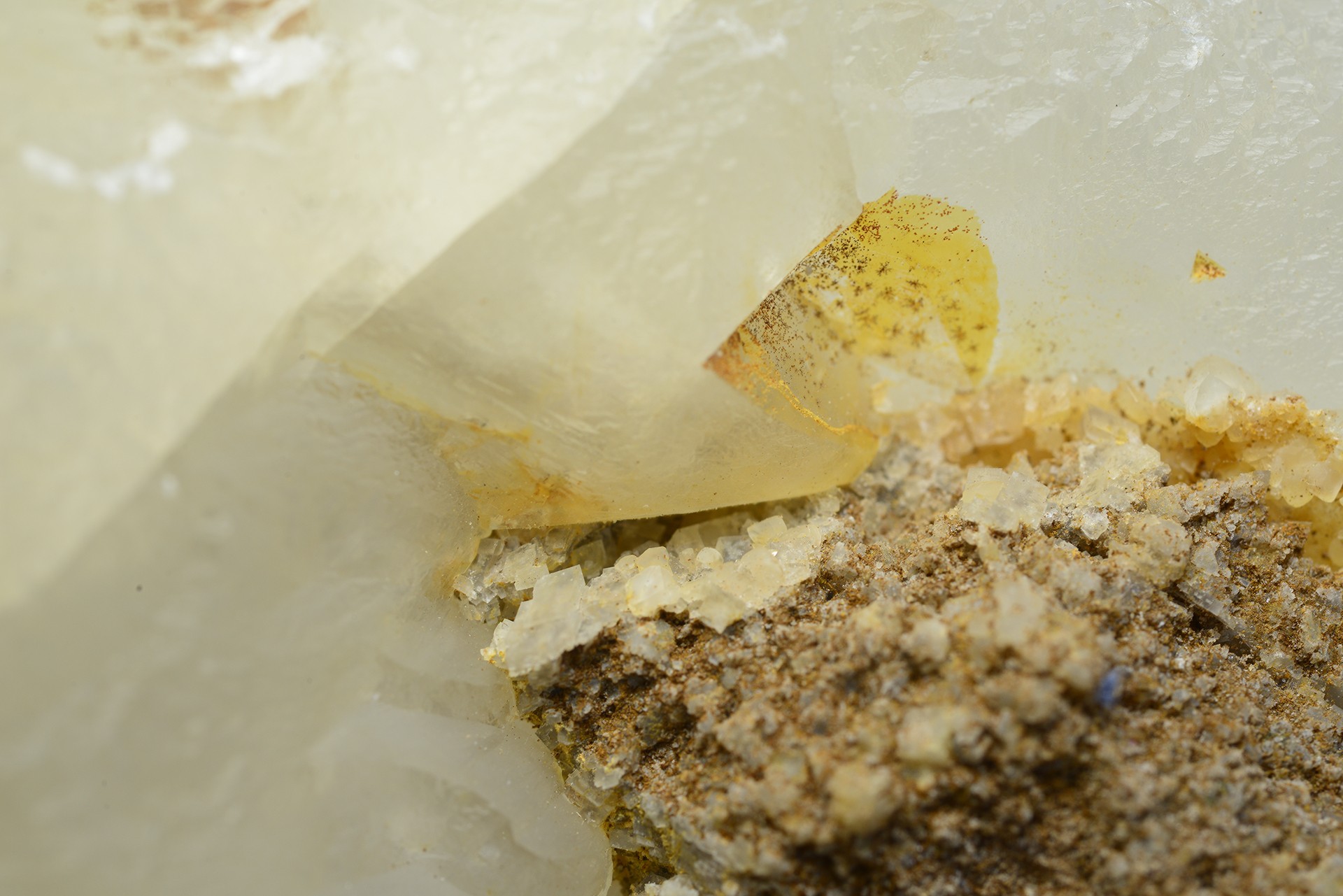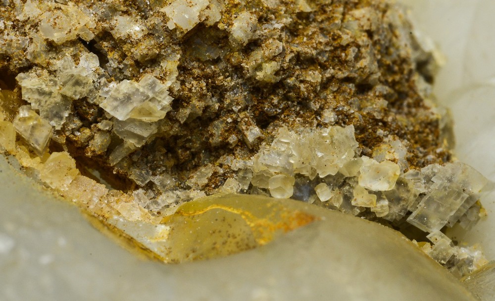 Et oui frangin :super: déjà la première photo était bien parlante en début de post, la morphologie du quartz, sa qualité, la présentation de la calcite, le dépôt jaunâtre, typique du site, et pour affiner par curiosité, il me fallait rechercher les deux cerises sur la gâteau :grandsourire: de la dolomite, hors là il y a même deux générations si l'on y regarde bien y compris une autre génération de calcite représentée par deux individus sur la dernière photo en partie basse et la deuxième le "mica" disons plutôt le talc :maiscestbiensur: ,malheureusement il n'est pas visible sur ses prises, s'il y en a, cela doit être bien petit, là pour le coup, il faut utiliser une loupe de bijoutier, il n'y a que Monique qui pourrait nous le dire?
