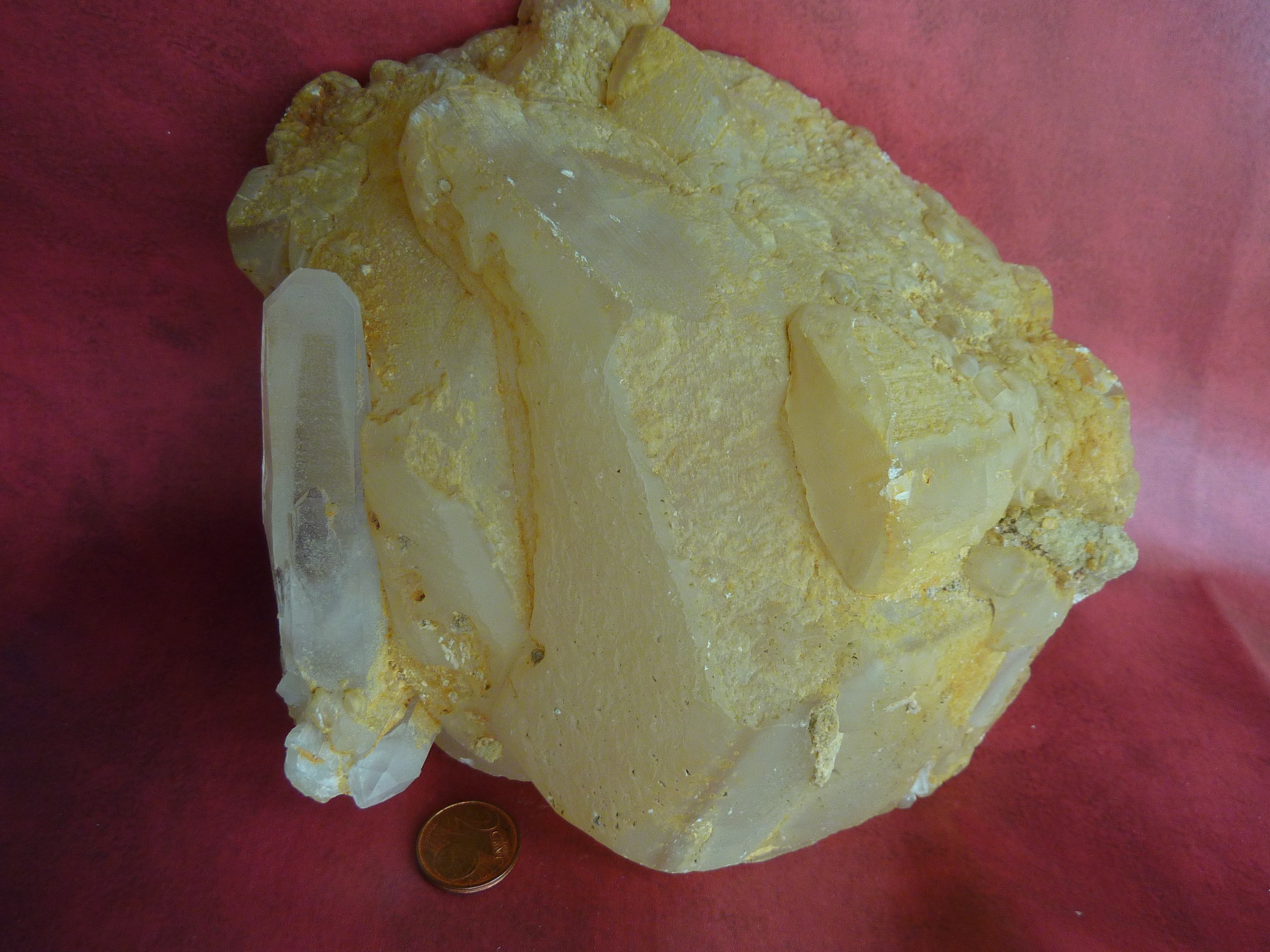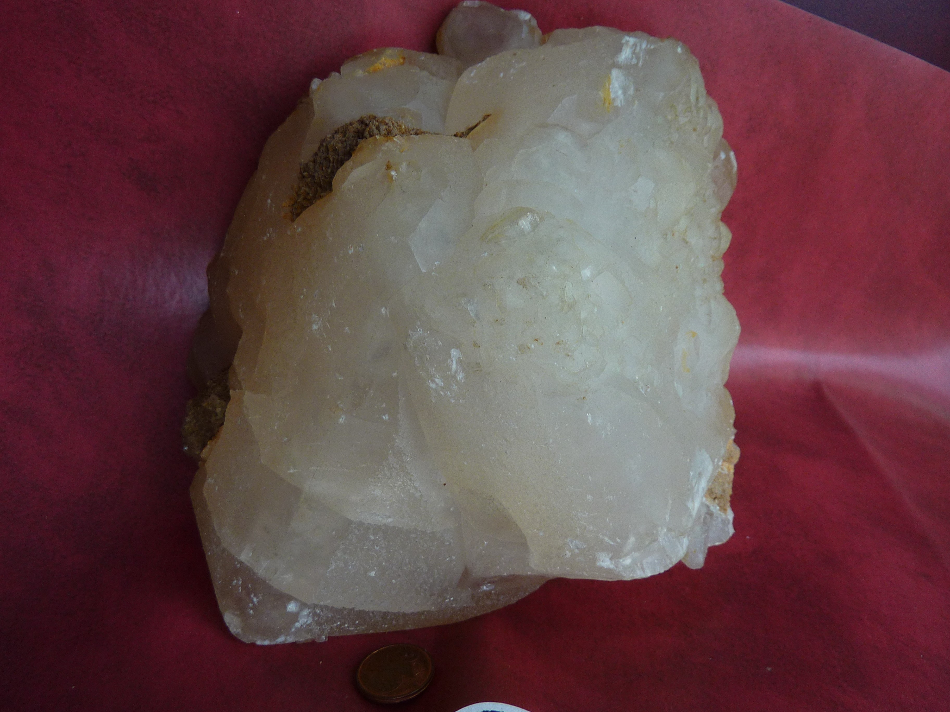 j'ai également un gros cristal isolé de calcite avec un quartz cristal de roche sur le côté. Toujours, d'il y a plus de 30 ans !!!  je ne me souviens plus d'où il peut venir. Si vous voulez bien m'aider. Merci d'avance