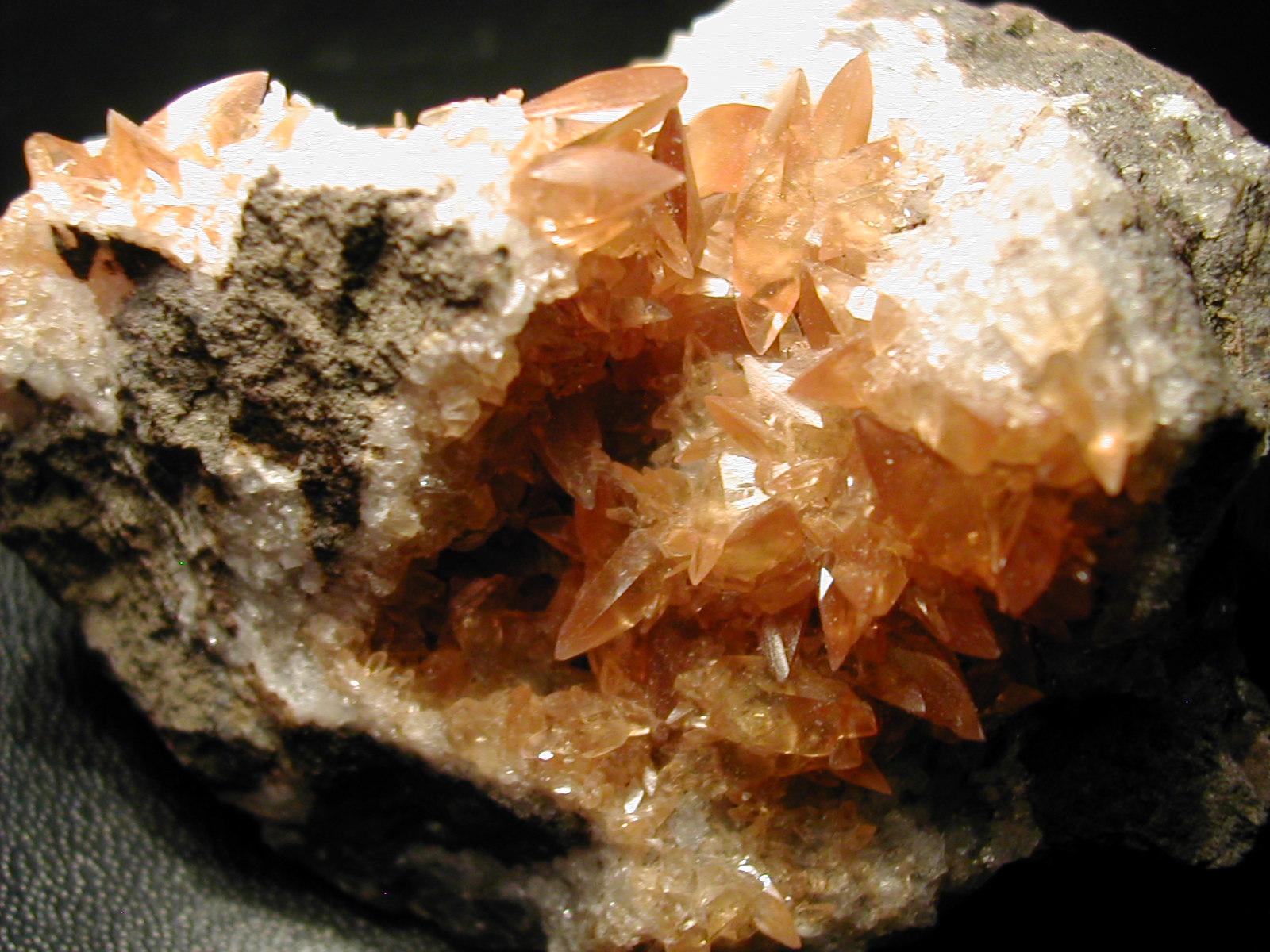 D'un côté, des calcites 'en pyramides" toutes orientées pareilles, avec des figures de dissolutions qui masquent la limidité. Plus une ou deux surcroissance limides sur les sommet.
