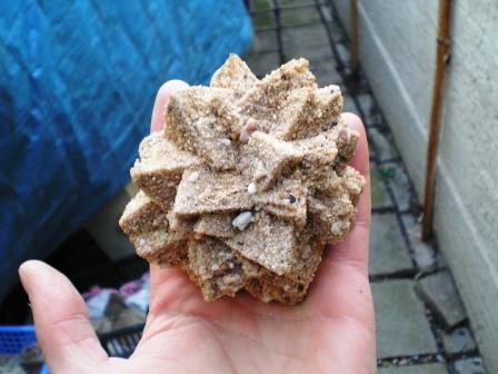 voici ma petite contribution sur le sujet avec 2 pièces données par un copain qui travaille dans une carrière prés de GANGES, il m'a dit que c'était des CALCITES ce que je veux bien croire au vu des pièces du post N° 450 ( dites moi si c'est une erreur !)