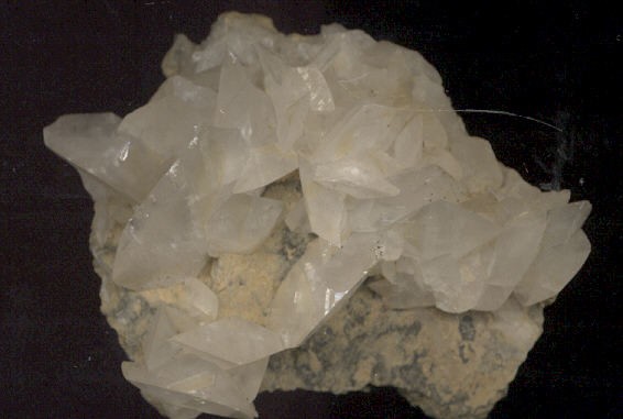 il y a pas mal d'annes, j'avais recupere dans une carriere de la calcite, transparente sur un calcshiste vert avec pyrites et peut etre dolomie rosee, les calcites etaient du type testace, je veux dire, empilees comme un toit de tuiles.