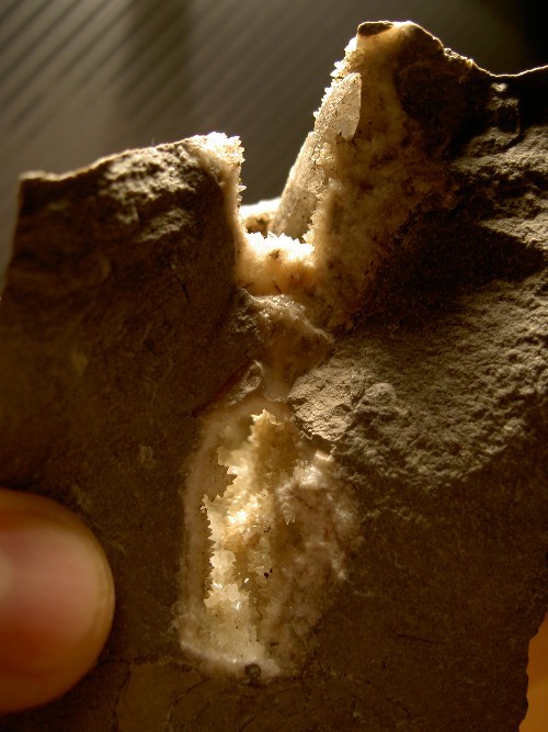 J'ai aussi ce genre de calcite, avec un"vide" entre les deux cristallisations, visible sur les cassures.Peut-tu expliquer cette formation?