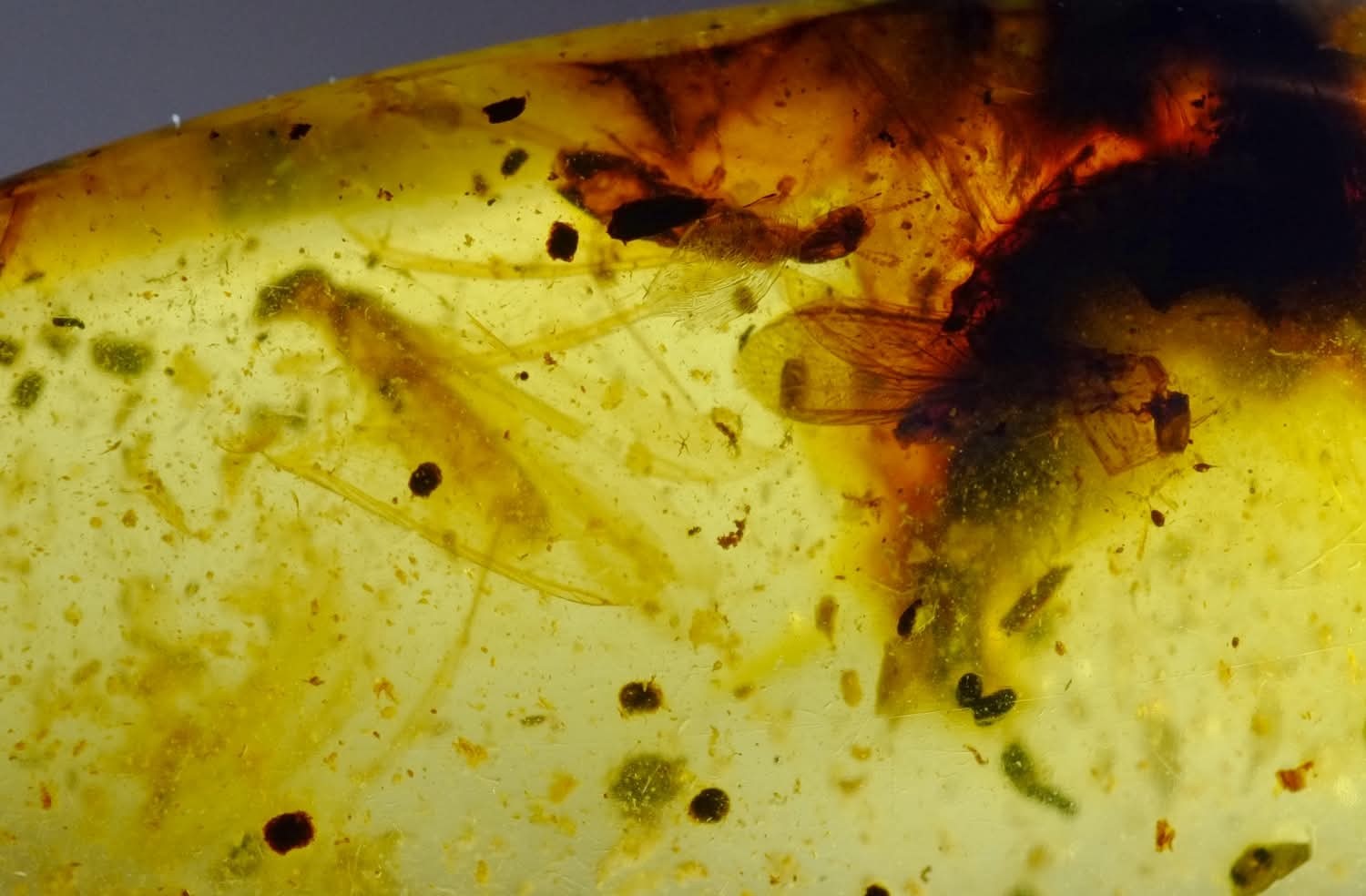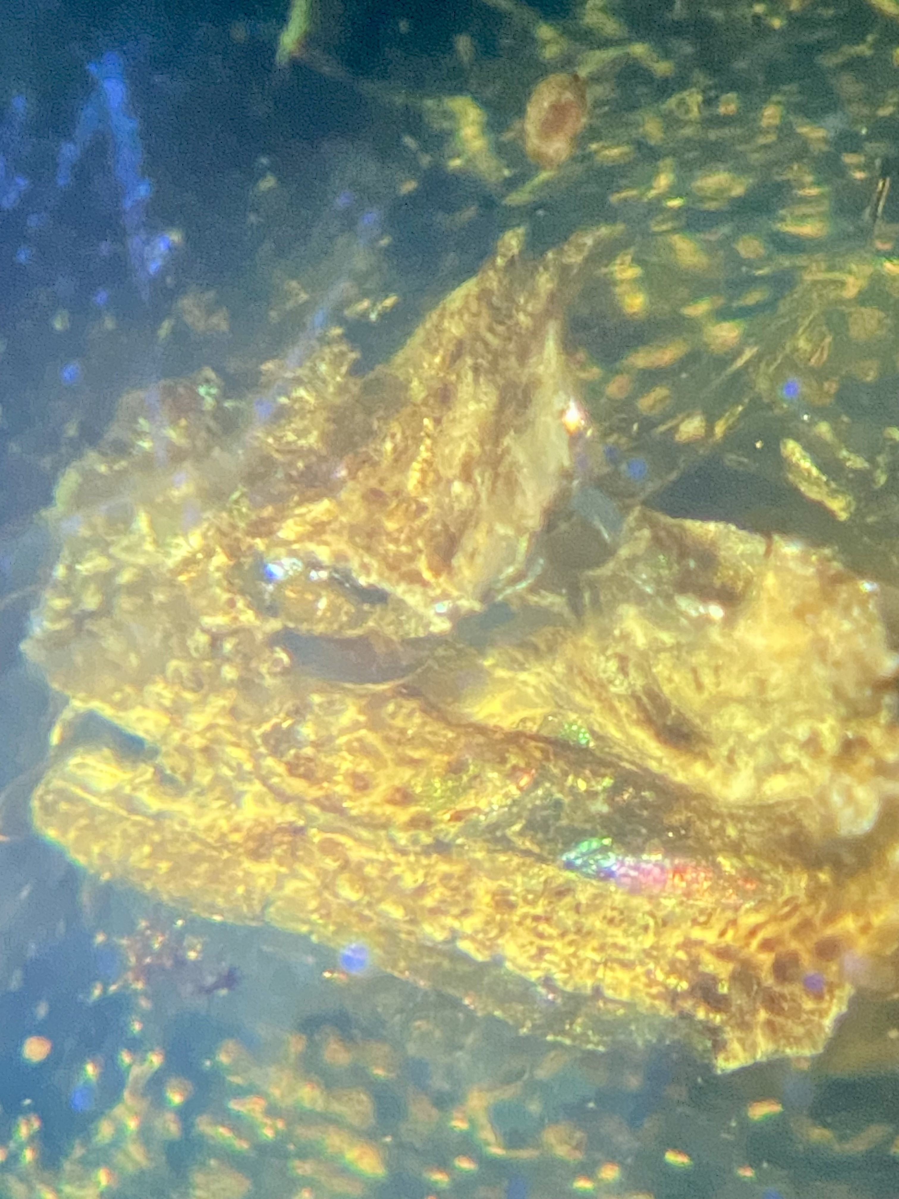 J’ai besoin de vous pour une inclusion dans l’ambre birmane qui semble intéressante, mais je n'arrive pas à la comprendre. Le morceau d'ambre est vraiment petit (photo 1), et l'inclusion qui nous intéresse est encore plus petite. Les photos 2 et 3 montrent le dos, et je pense qu'il ressemble à un morceau de peau/mue de lézard. Les photos 4 et 5 montrent le dos de l'inclusion, et c'est là tout le mystère. On dirait de minuscules dents. Toutes les idées sont les bienvenues :)