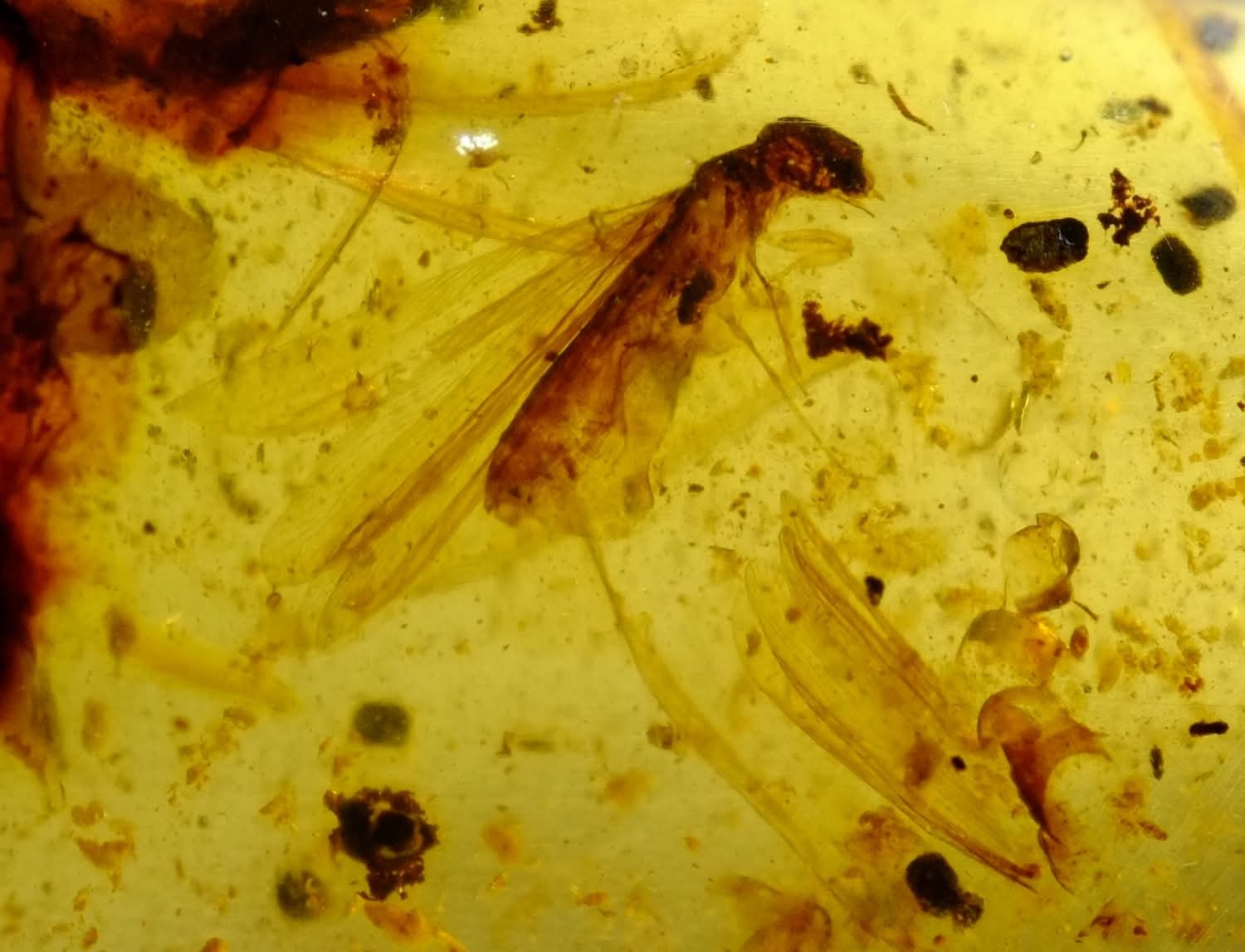 Pour la photo suivante j'y ai passé quelques heures (et c' est pas finit...) au départ je ne voyait qu'un truc informe au milieu du morceau d' ambre et puis petit à petit