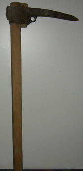 sur l'illustration disposée par Rabaton, tu remarques que l'œil qui entoure le manche est lisse, il ne présente pas la tête ou protubérance présentée par ton outil… c'est là un véritable pic de mineur, fait pour piquer (on utilise la pointe). L'autre pic de mineur, proposé par SiO2, est plus récent : fer interchangeable.