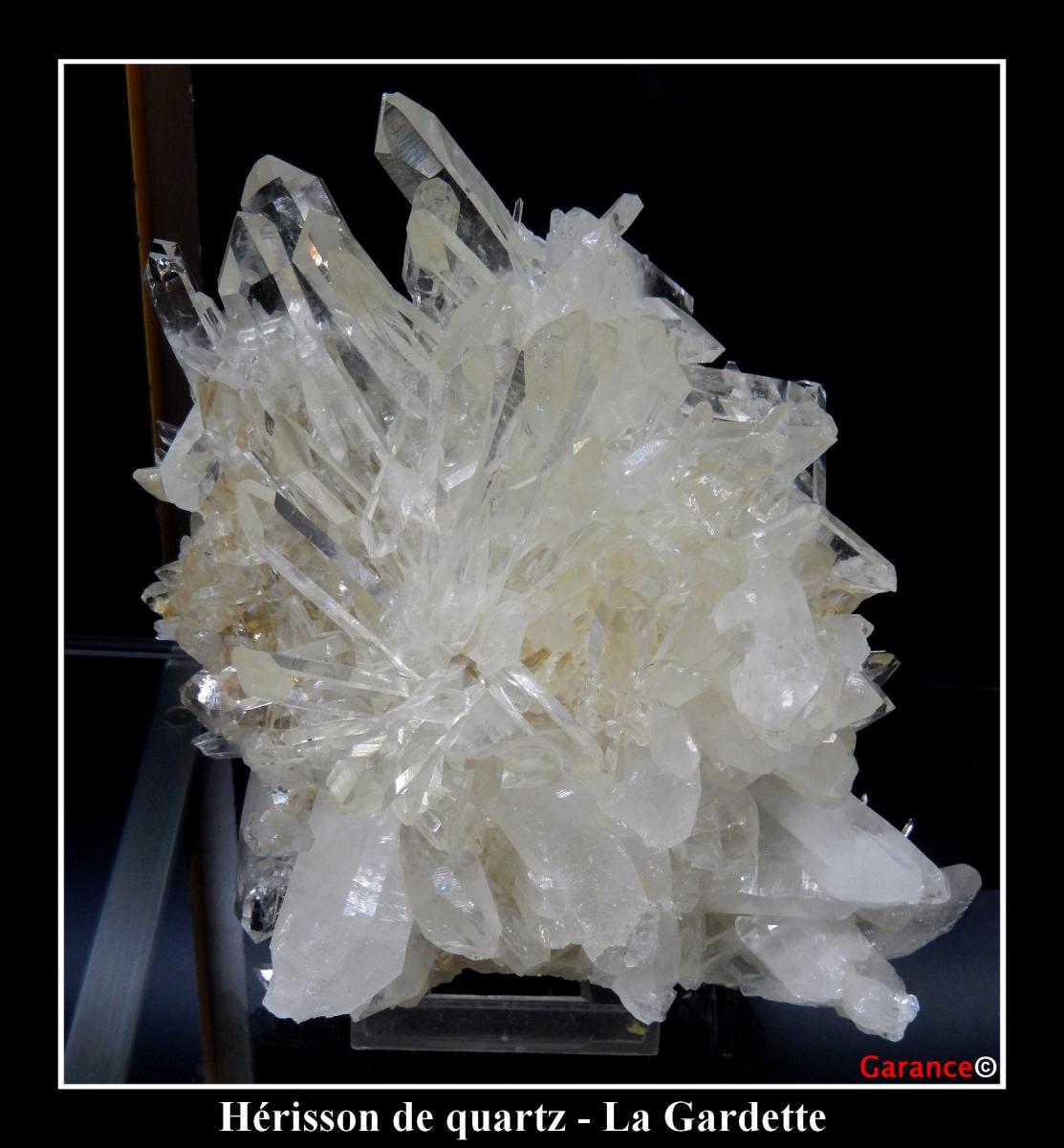 - La Gardette reste un mythe pour ses quartz, leurs éclats et leurs dispositions ainsi que pour les nombreuses associations qui y ont été trouvé . Or, barytine , chalcopyrite, pyrite, galène, tétraédrite et dans des tailles respectables sans oublier les divers mâcles de La Gardette (ouvertes , fermées etc...)