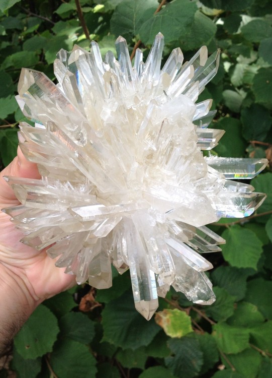 Voici un "hérisson" de quartz "made in" La Gardette, Oisans, Isère (environ 20 cm de diamètre)... Les cristaux sont légèrement fumés (peu visible sur la photo).