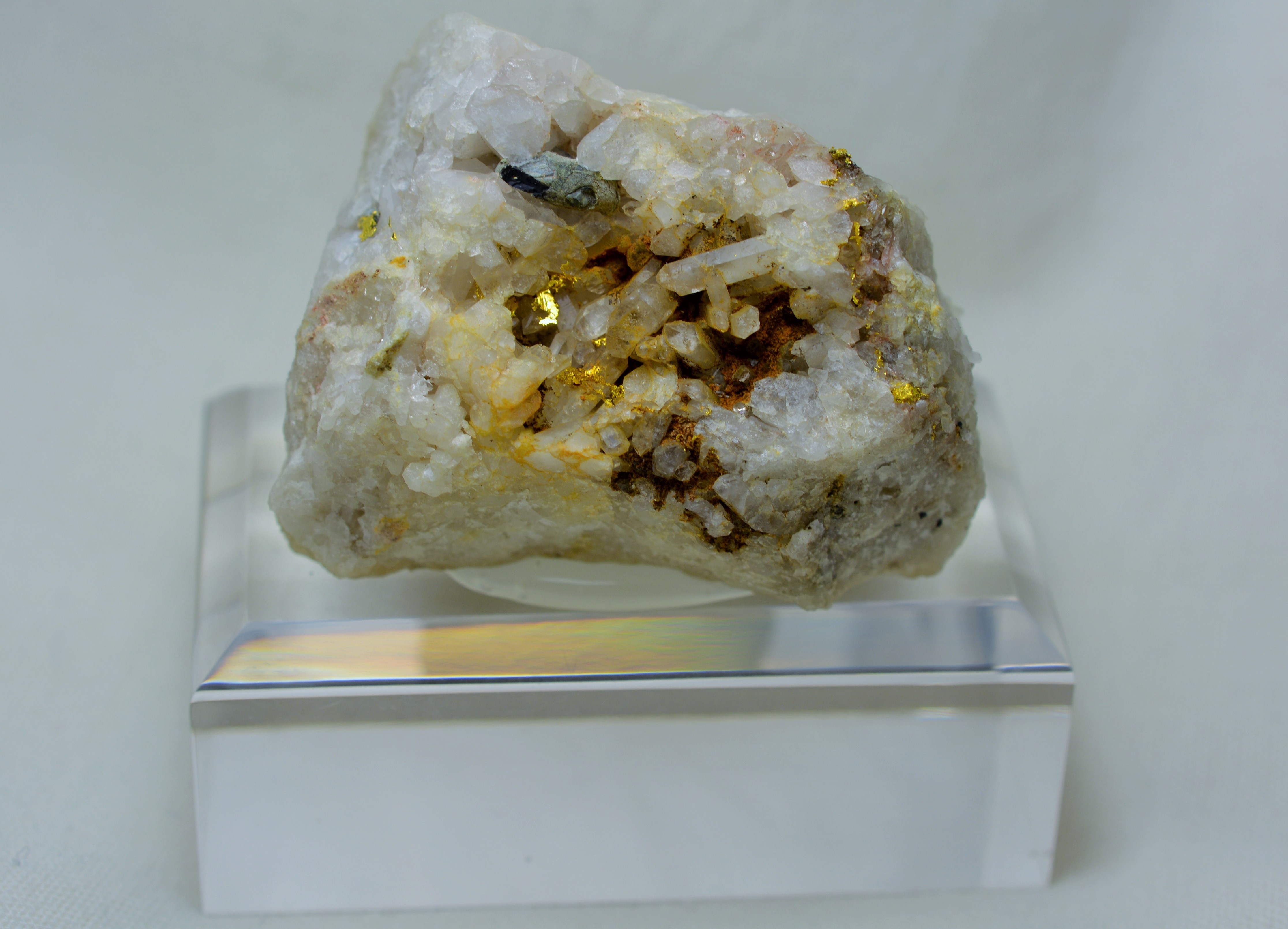 Or natif sur quartz et galène, mine de La Gardette, Oisans, Isère.