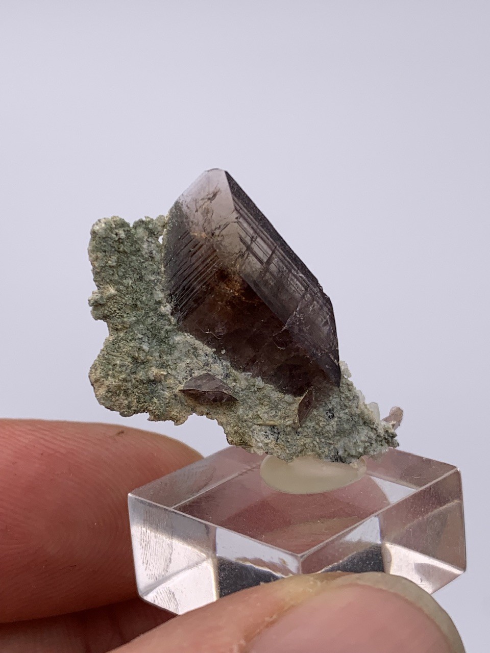 - axinite sur quartz fume de Strzegom, Pologne (un peu exotique comme association)