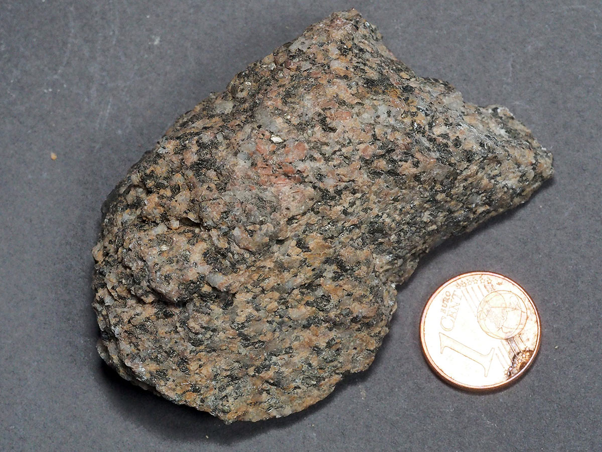 Dans ma boite à cailloux, j'ai une autre petite roche à grains un peu plus fins que la précédente et sans foliation a priori ...
