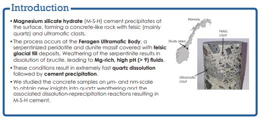 Juste une remarque, les photo MEB sont des exemples naturels, en Norvége, c'est la présence de serpentinite et son altération qui monte le PH.