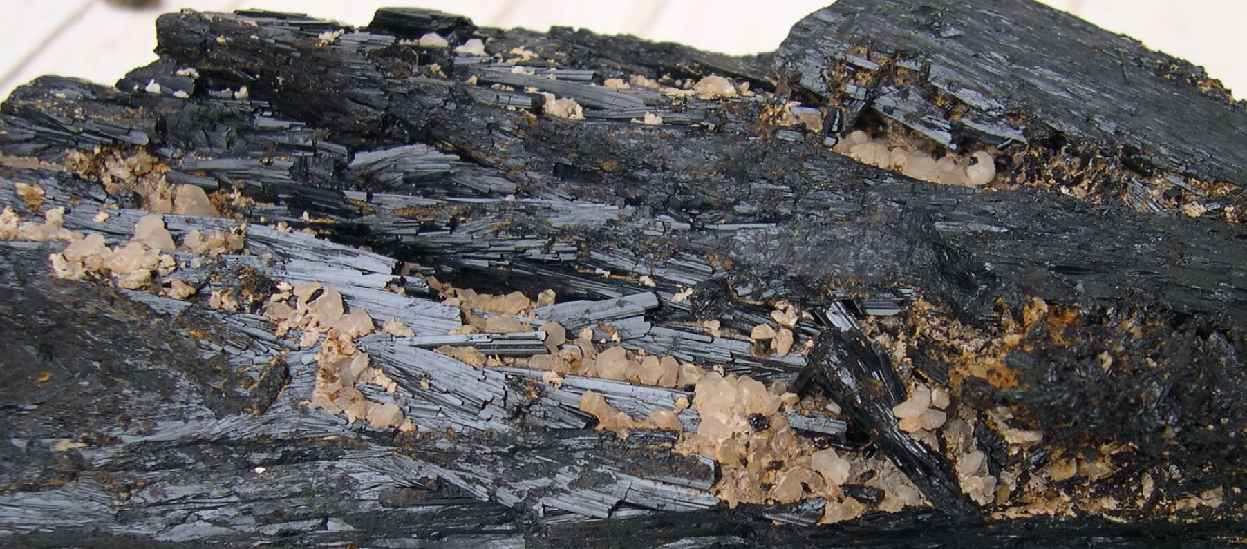 Merci pour vos remarques. J'ai enfin réussi à faire une photo plus correcte sur laquelle on distingue mieux la brillance de la tourmaline et ces énigmatiques cristaux blancs. Pour répondre à 1fragin, difficile de faire un test hcl car je n'en ai qu'un seul exemplaire. Ces cristaux me semble avoir une section pentagonale. Ils étaient recouvert d'oxyde de fer et la pièce a été nettoyée au dithionite. L'aspect des cristaux blancs résultant de ce traitement peut faire penser à l'aspect de certaines calcites. La dureté est sans doute inférieure à 6-7 et la surface se raye assez facilement avec une aiguille. La suggestion de provenance de MaDi est peut être une piste qu'un spécialiste du secteur pourrait ou non confirmer.