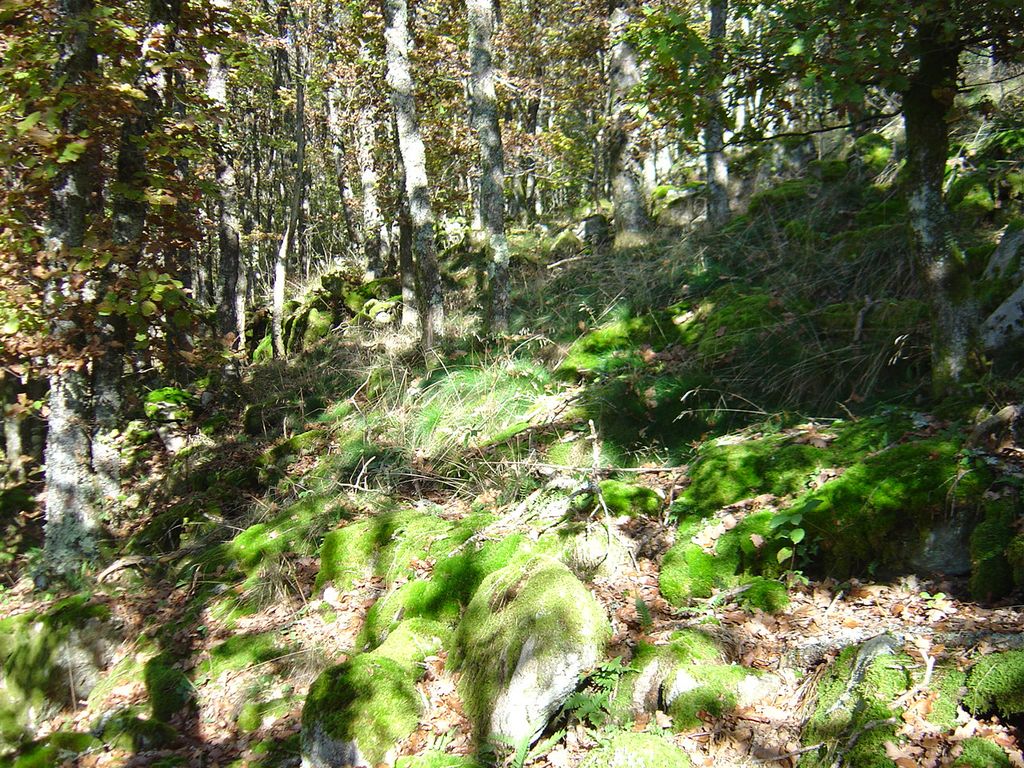 Et puis le secteur est fortement végétalisé , les affleurements sont recouverts des produits de l'érosion et comme ce n'était pas suffisant , les roches en surface sont recouvertes de mousse .
