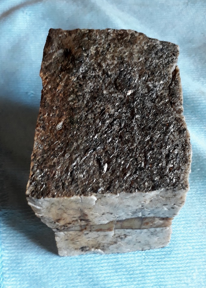Si je remets les choses dans mon langage, pour vérifier que j'ai bien compris: les cristaux de Cordiérite, à l'origine idiomorphes et probablement prismatiques, ont été intensément déformés et tectonisés, puis ils ont recristallisé, comme la calcite dans un marbre. Il était donc illusoire de chercher un pléochroïsme, qui existe peut-être à l'échelle des cristaux élémentaires, mais pas à l'échelle macro.