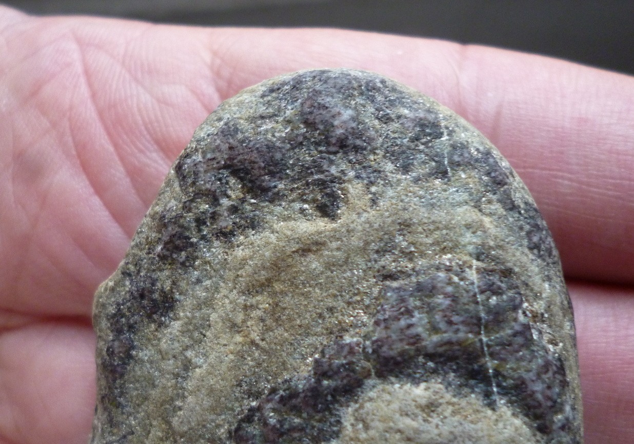 En effet, je vois une origine para, tandis que Phoscorite voit une origine ortho. On voit la même chose . Des parties sombres bien grenues, et bien feldspathiques.  Donc pas des méta pélites. Mais je vois des parties bien grenues, et bien feldspathiques, sombres, et des parties claires, avec de la muscovite, et des grains de quartz, sans doute de feldsapths, plus fine.  On voit la même chose. C'est un galet. on a pas de contexte. Peut être que dans le contexte, c'est un quartzite, rubané.