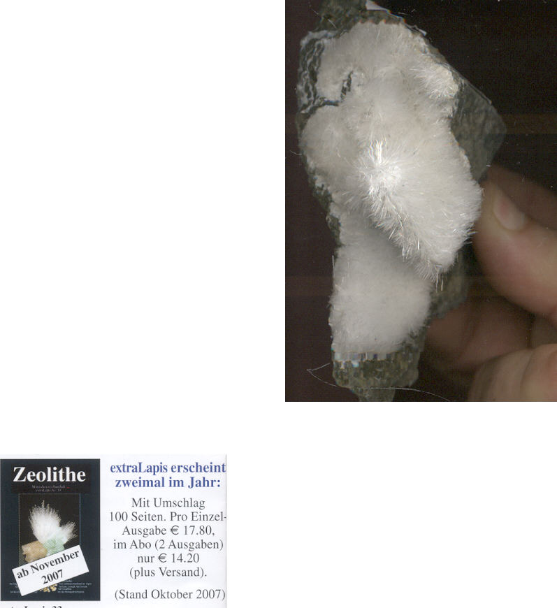 Il existe un N° spécial "ZEOLITES"de Minéraux et Fossiles (N°9) pages 12 à 16; et un autre sort ce mois ci chez Lapis en anglais ou en allemand je ne sais pas trop. N° spécial que tout bon minéralogiste se devrait d'avoir dans sa bibliothèque (pour rendre service il m'en reste un, au cas où...)