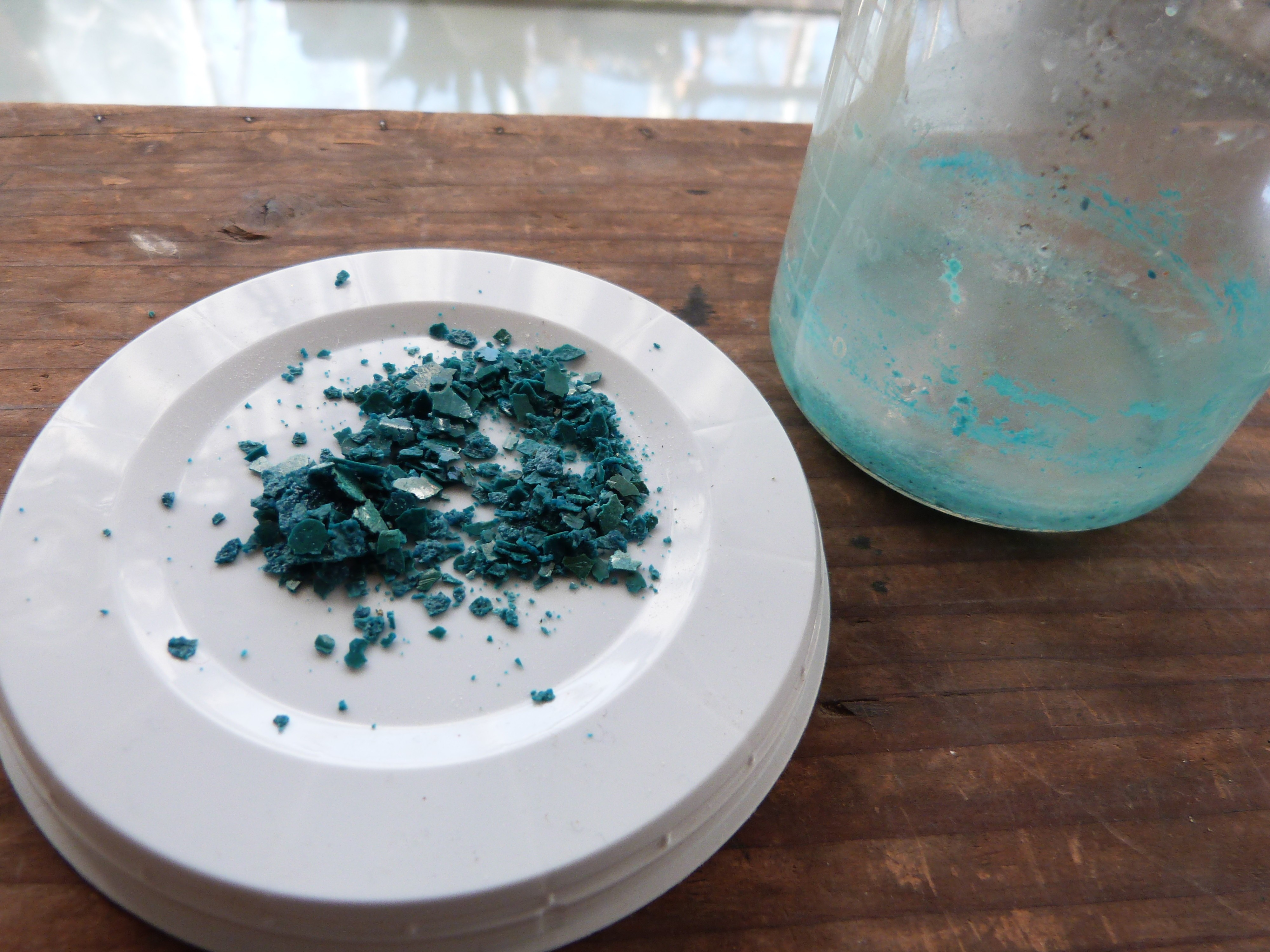 si mon azurite est moins pure je fais un lavage avec de la cendre de chêne et/ou de la chaux (hydroxyde)