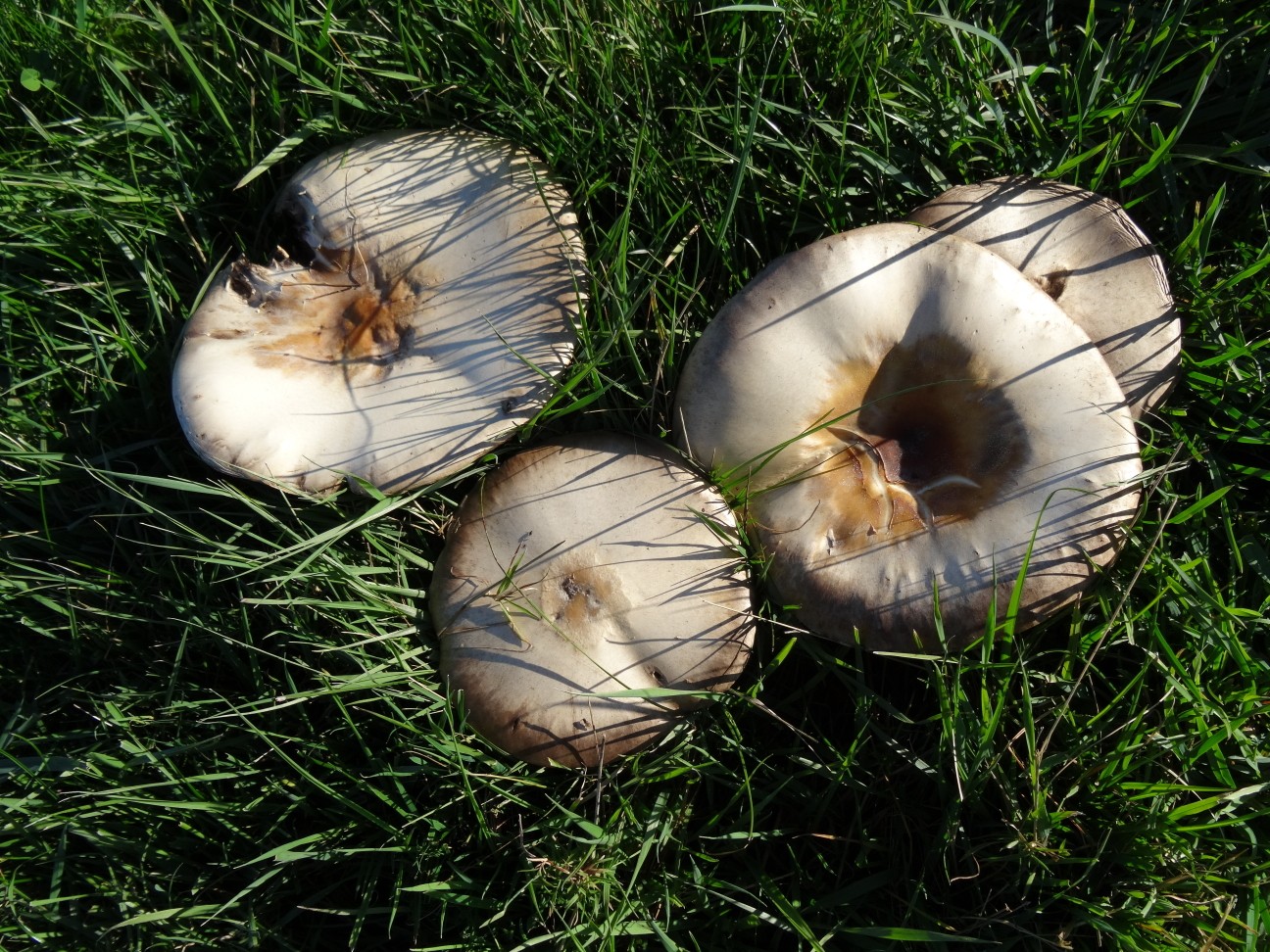 J'y avais pensé en voyant le "juvénile", mais les "gros" m'ont mis dans le doute avec leurs chapeaux d'environ 20cm de diamètre et la couleur des lamelles un peu bizarre pour des rosés. Quoi qu'il en soit, les asticots ont l'air de les apprécier...