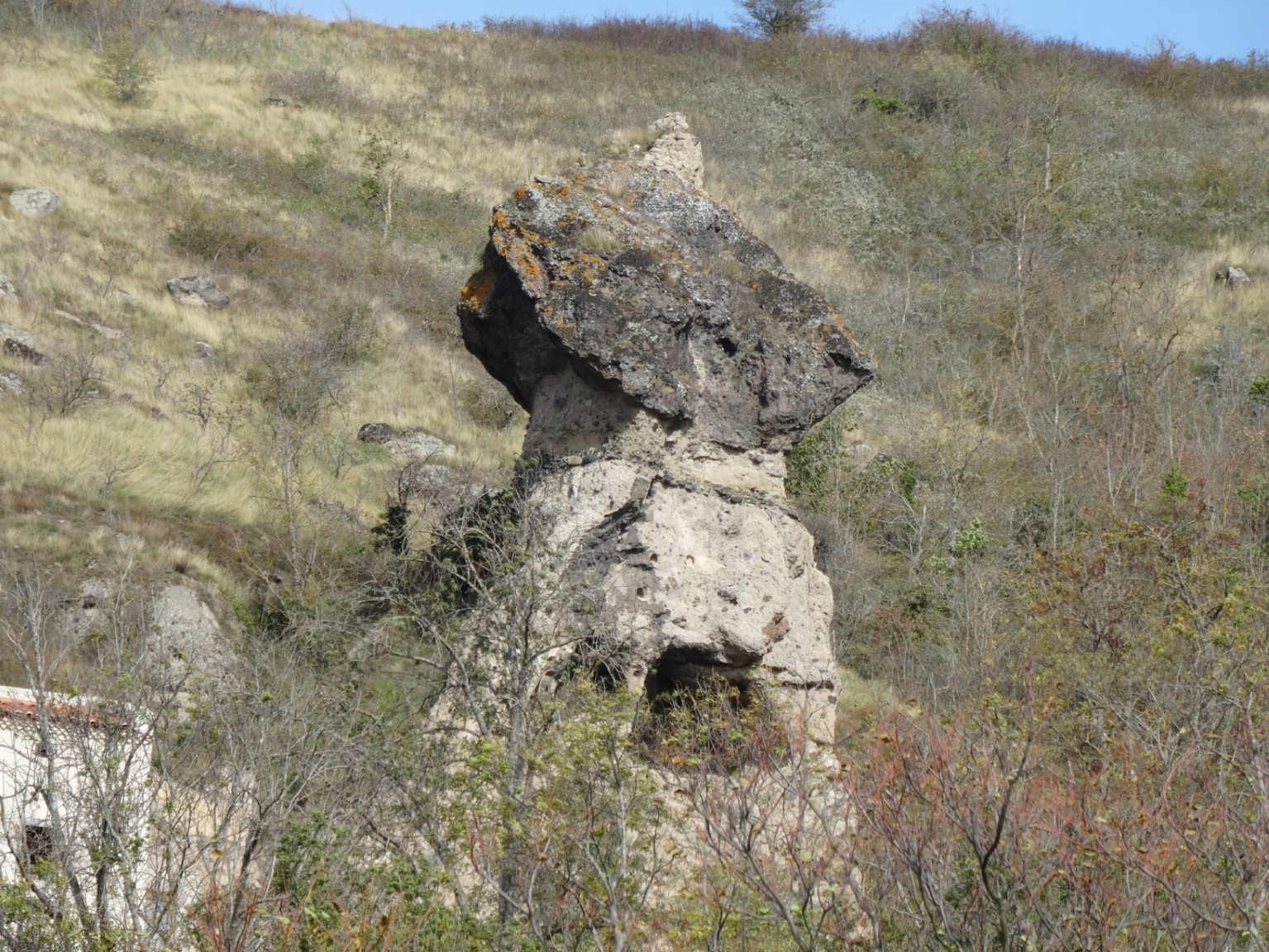 Retour vers Perrier, après avoir traversé le petit village de Pardines. Sur le bord du chemin, un énorme bloc probablement détaché de la falaise