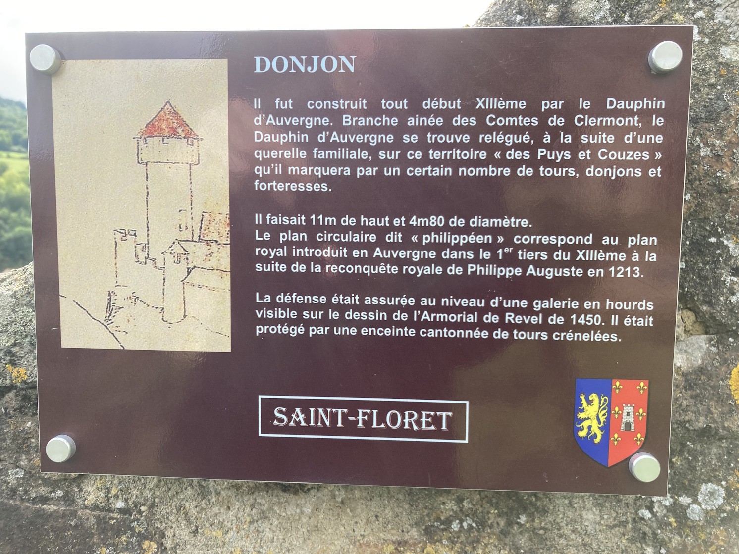 Blotti au pied d'un château dont la construction débuta au XIII ème siècle, le village de St Floret est riche d'un patrimoine médiéval remarquable. Des peintures murales des XIVème et XV ème siècles ornent les murs de l'église du Chastel et du château. De même une vierge en noyer à décors polychrome, classée aux monuments historiques, datée du XIIIème siècle (actuellement en cours de restauration) est logée dans une petite niche du pont médiéval franchissant la Couze Pavin. Comme beaucoup d'autres places fortes, Richelieu ordonna la déconstruction du château et il ne reste de l'ensemble féodal que des vestiges nichés sur un éperon granitique.