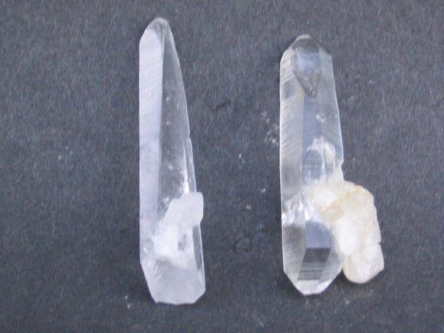 Deux petits quartz, un de 5 cm et un biterminé de 4 cm avec des micro-calcites dessus........... :grand sourire: