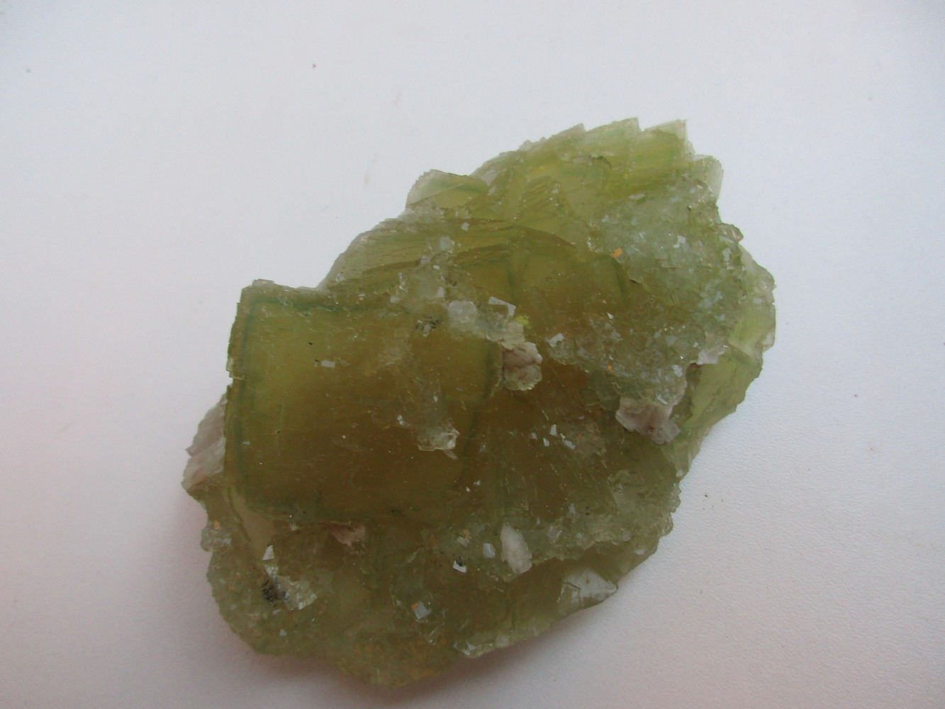 La géode s'est élargie (tension?) , et une nouvelle génération de fluo est apparue ,en cubes millimétriques ,de transparent à vert "émeraude".