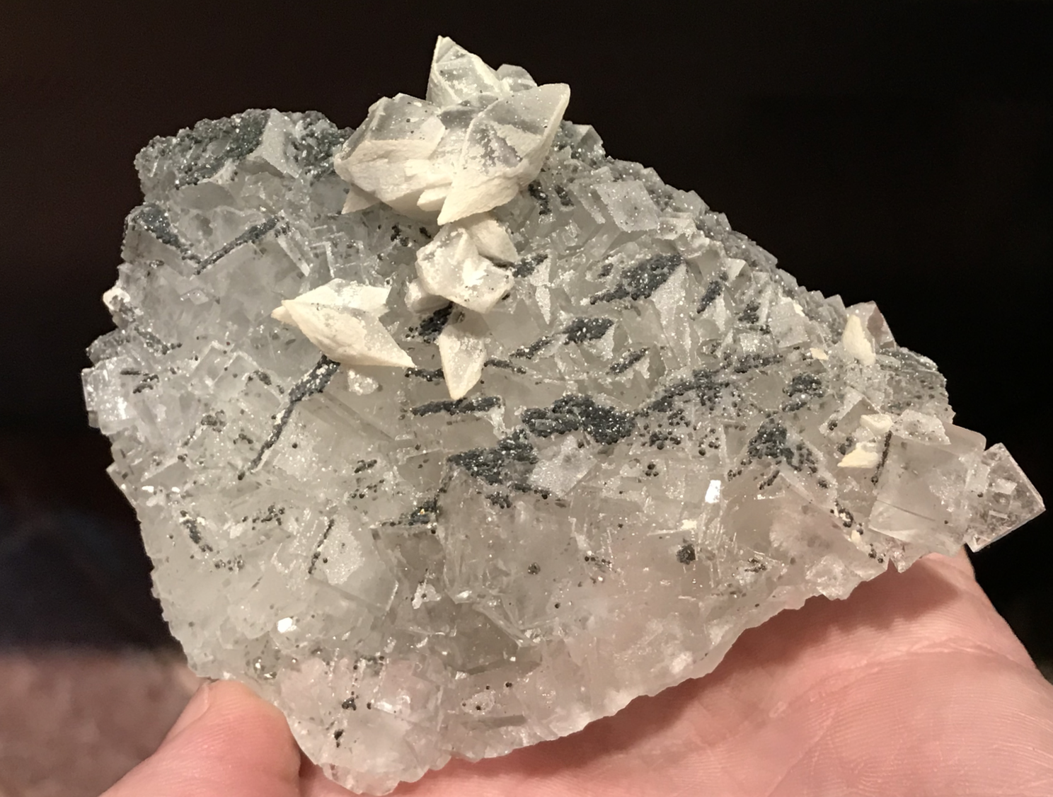 Très jolie cette petite de Fluo saupoudrée de Pyrite-Barytine ! Pas très courant ça ??