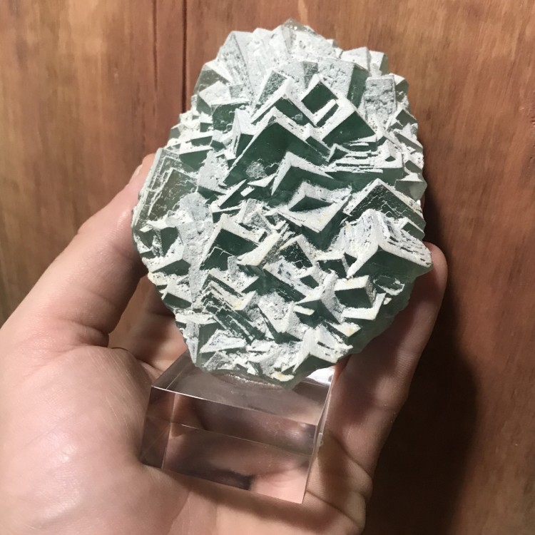 Fluorine en 'pyramides mayas' vert d'eau sur Quartz pyramidal [50mm]