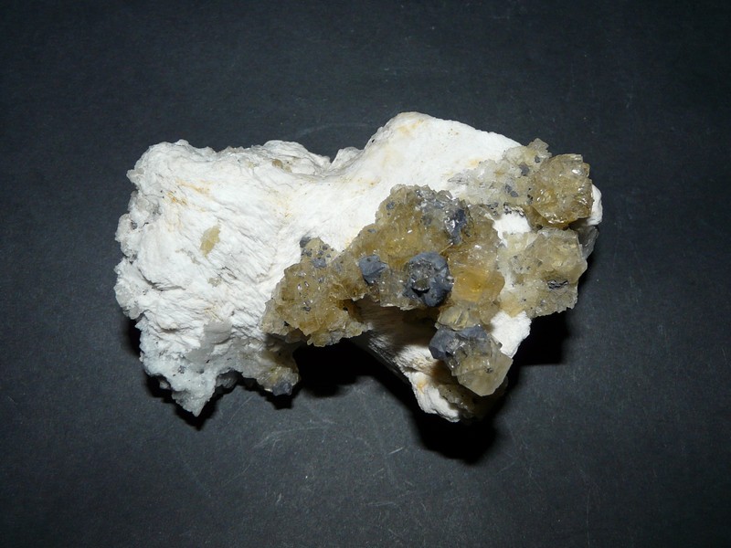 Les fluos bleus (parfois "encre de chine") sont typique du filon Sud 3 niveau 174, les premières trémies à l'ouest du grand travers-bancs : à ma connaissance pas ailleurs... Il existe qq specimen "époque mine" petit mais très transparents (+ que les modernes). La poche a sans doute été ouverte pas Dalmasso, Defunti et Rostan (?) vers 1990 ; puis Daniel et moi y avons beaucoup creusés, puis Nicolas V. et d'autres ? Il y a eu des choses vraiment magnifiques et tout à fait originales pour la France : c'est un bleu vraiment bizarre. Ceux qui connaissent le site savent que cette zone est vraiment difficile d'accès depuis que le puits s'est effondré et que la poche est dans un Gneiss vraiment massif et compact...