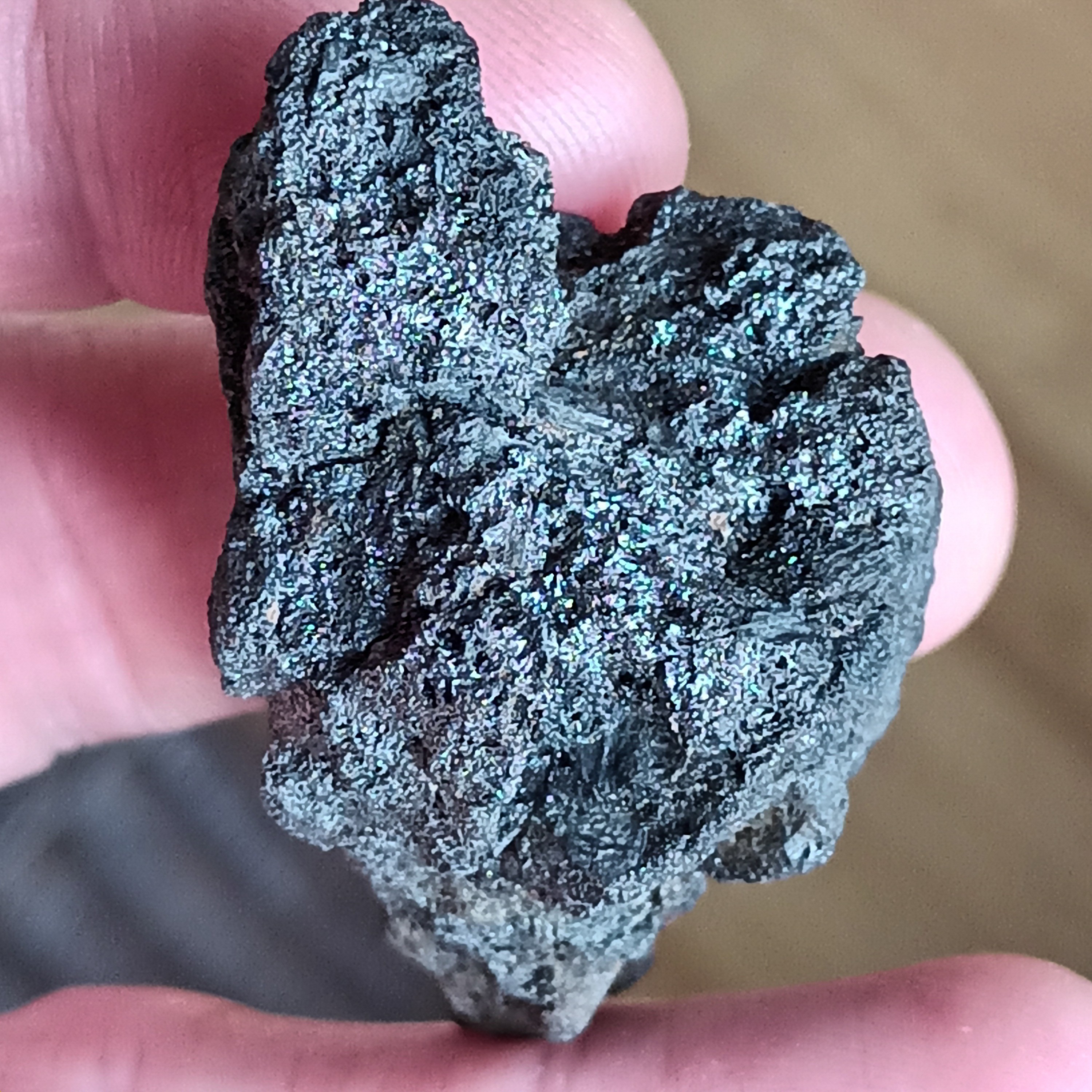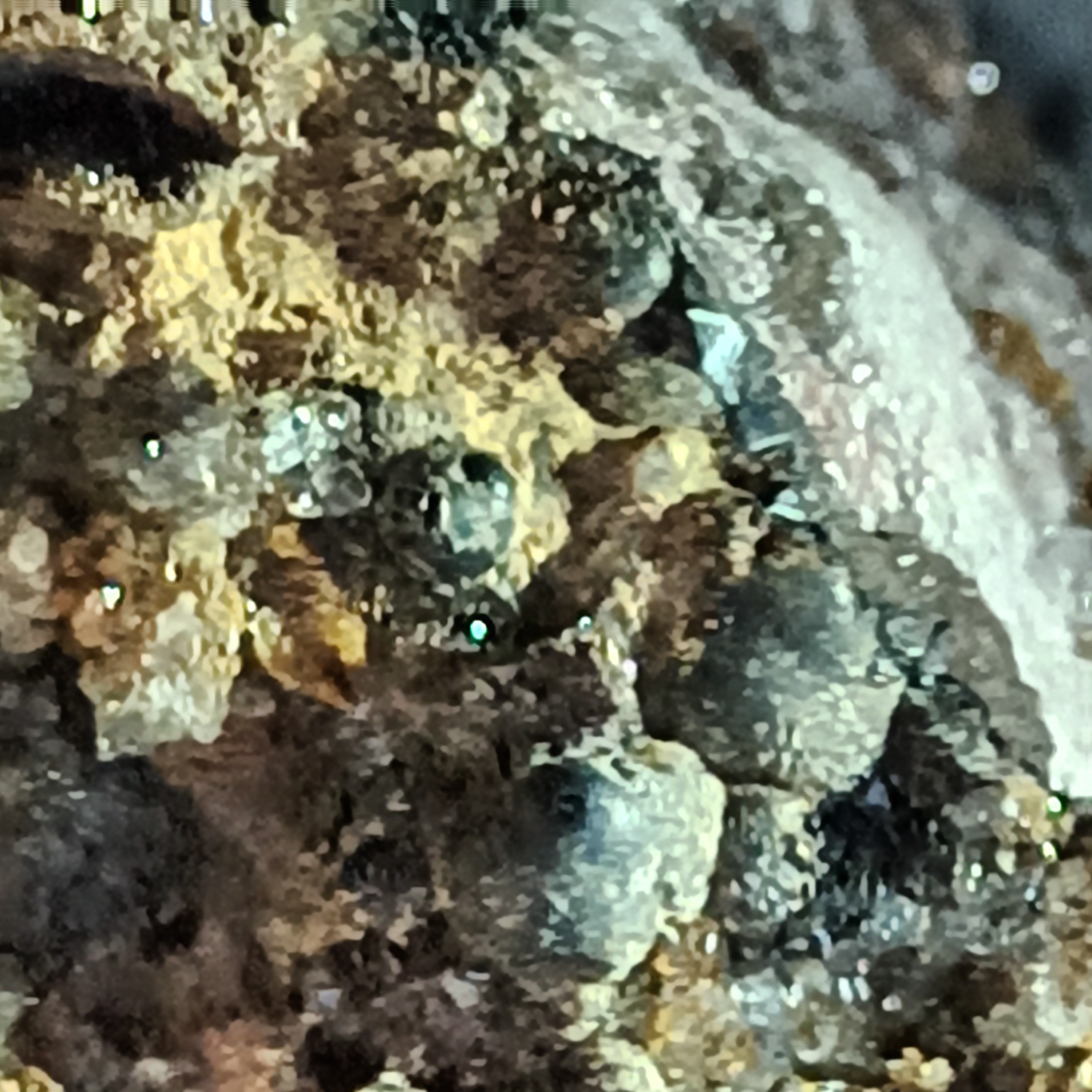 Pour les "scories", j'ai l'impression qu'elles intègrent des fragments "exotiques". Indéfinissable sur ces photos, prises via un smartphone, probablement.