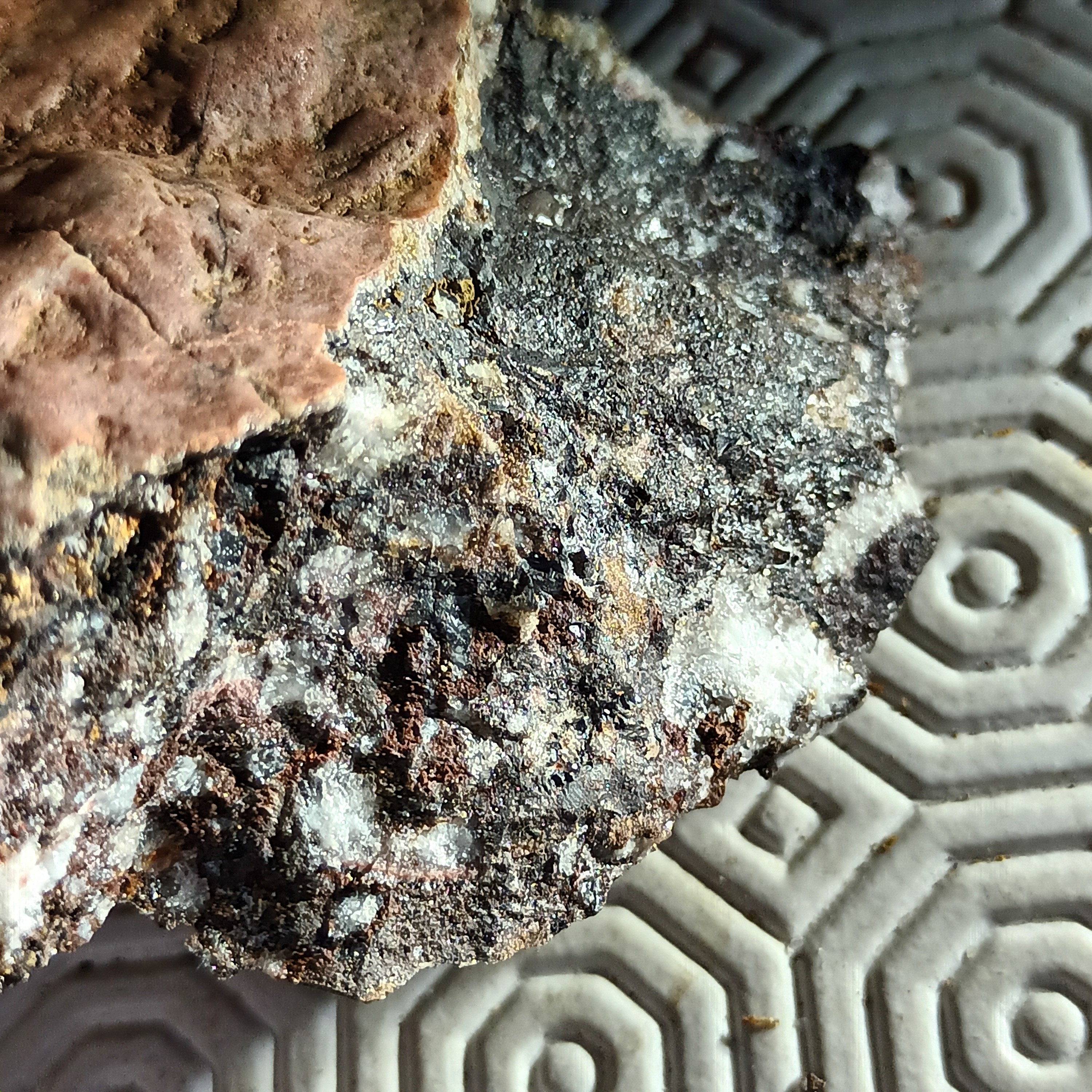 III : Zone avec présence de quartz, de galène, de goethite et d'hématite....   voir photo ci dessous