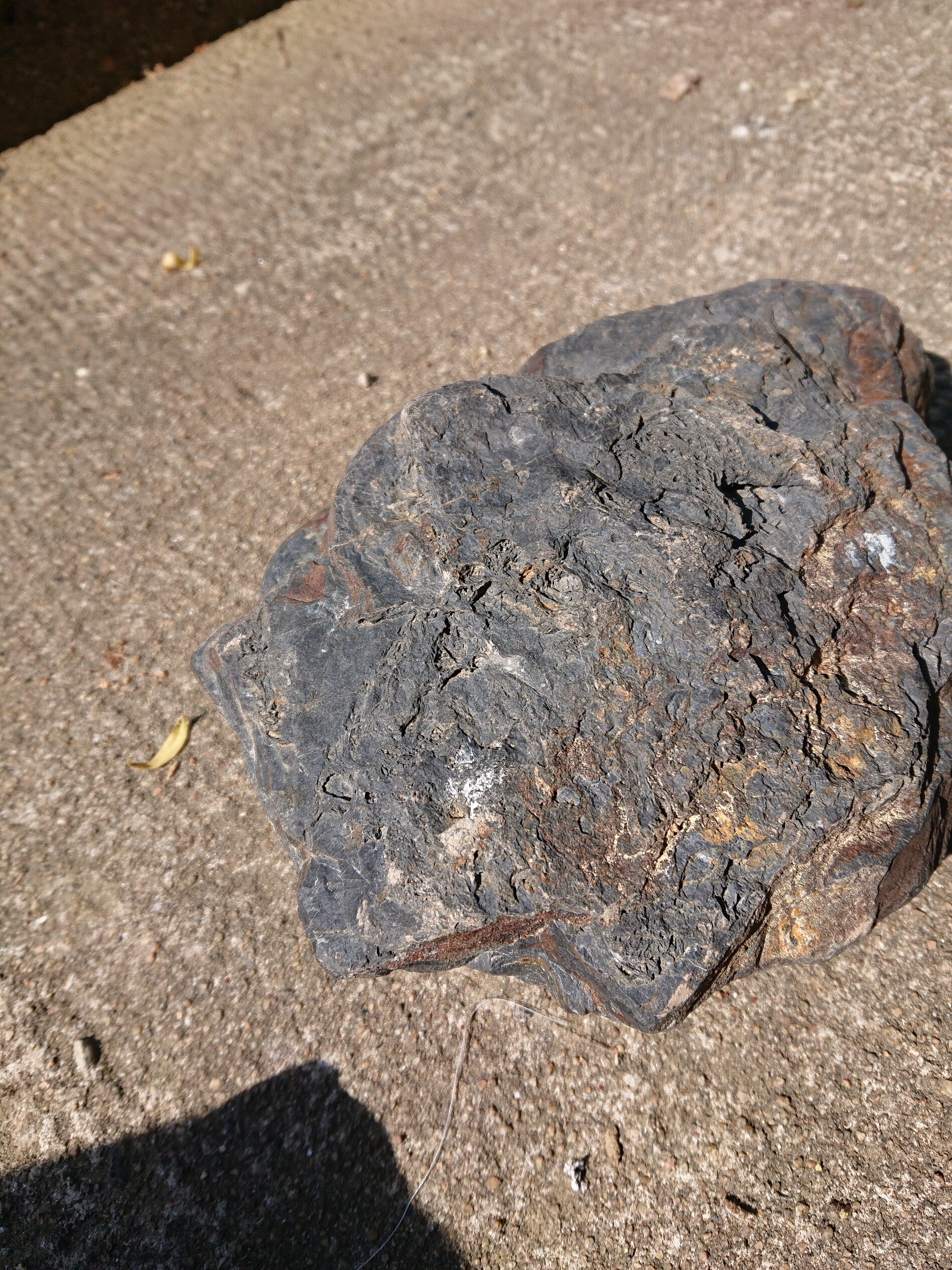 Cette pierre semble vraiment lourde comparer à d'autre roches de la même taille et sur la photos avec mon doigt c'est moi ai voulu la couper à la disqueuse pour pouvoir voir l'intérieur merci pour vos réponses.