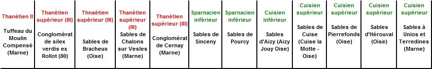 les étages les plus pauvres sont pour le moment le Sparnacien qui est effectivement assez similaires en divers points du Bassin Parisien, car essentiellement issus de faunes peu profondes (Vexin, Marne), peu d'espèces, souvent des invertébrés peu diversifiés (ostreidae, cyrene, potamides, etc... pas de traces de coraux et de bryozoaires, ni d'échinodermes)