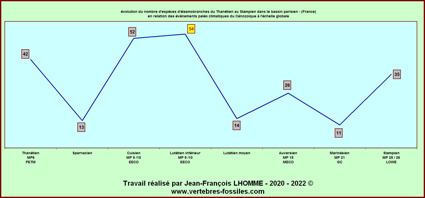Dans le même ordre de curiosité, le Lutétien moyen, d'après tes graphes la faune y semble très réduite (comparable à celle du Sparnacien) alors que la richesse paléontologique chez les autres groupes de cette période est à son optimale.