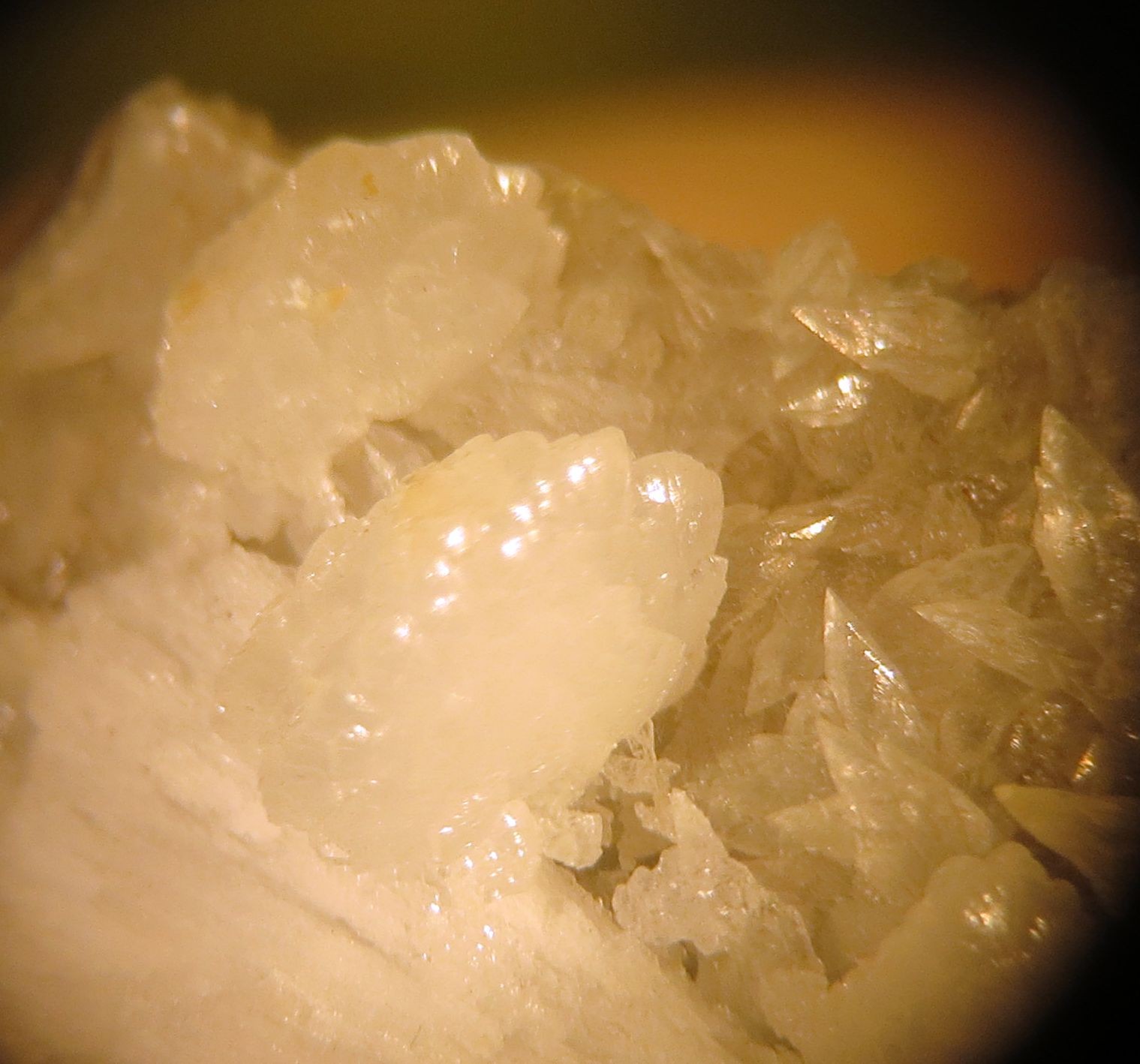 Une présence de plomb expliquerait la variation d'éclat comme dans certaines Aragonite plombifère = Tarnowizite.