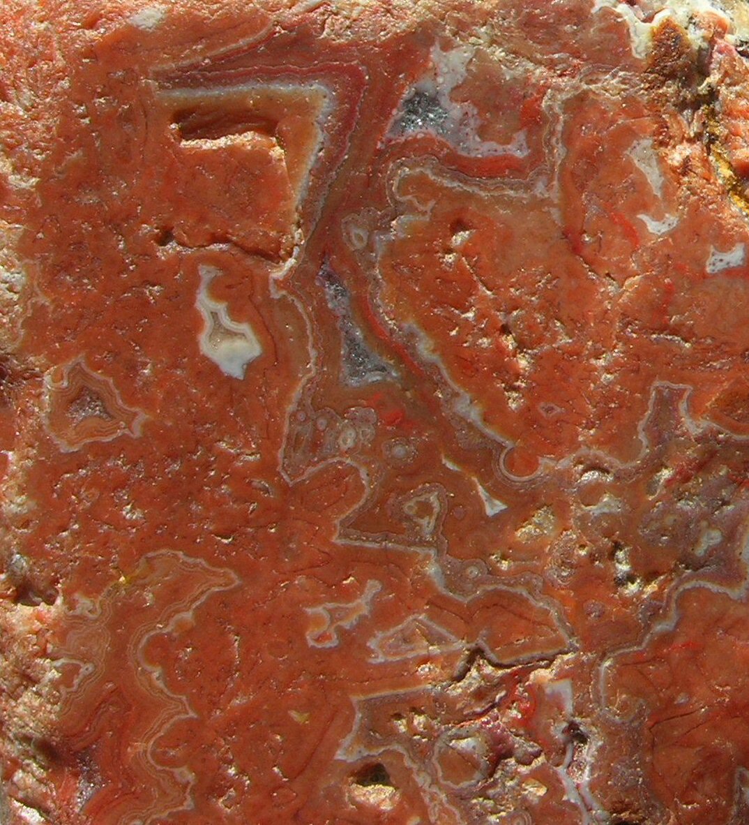 Pour la pierre rouge, on dirait qu'elle a des vacuoles. Calcédoine peut être.