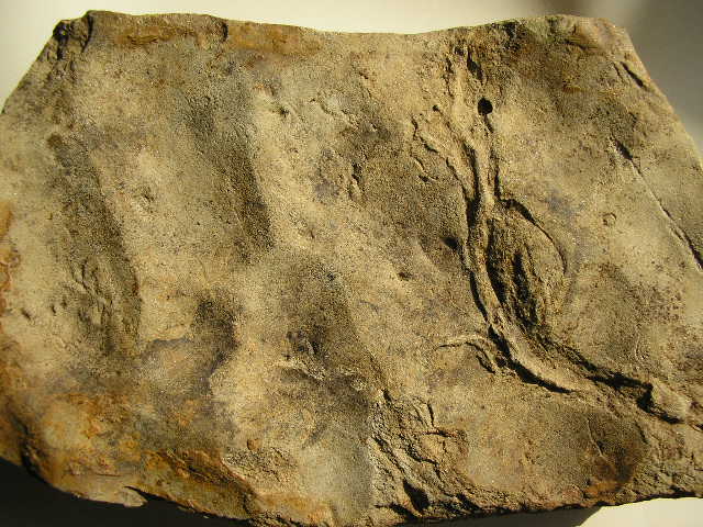 dans le Muschelkalck gréseux il y a un niveau de sable induré recouvert d'une fine couche d'argile et de micas qui préserve très bien toutes sortes d'empreintes.