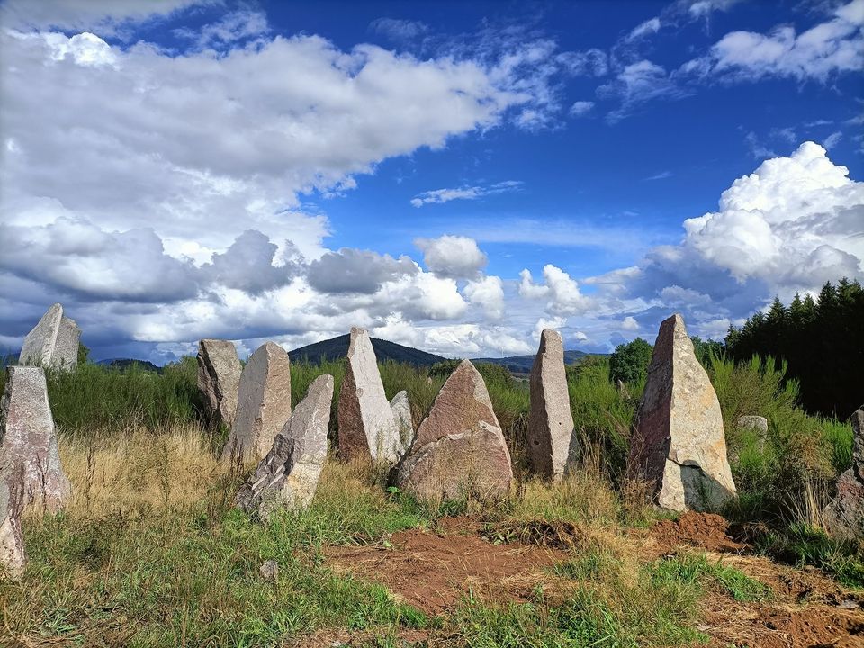 Bonjour, petit partage de ma sortie historique et géologique d'hier.Petite vue de la carrière Petitjean de Senones où l'on trouve le granit de Senones corail et feuilles mortes,du granit gris bleu des Vosges de la carrière de La Grosse Pierre de la Bresse ,et du granit du Gard !!!visite de la carrière de La Praire,rhyolite et basalte.Visite d'un affleurement de cendres compactées de rhyolithe pulvérisée à Senones,où existait un mine de fer avec tungstène,qui fit la fortune de l 'Abbaye de Senones,visite de l 'abbaye de Moyenmoutier explication historique et géologique de l 'édifice,et explication en cours de route sur les glaciers et traces encore visibles dans le paysage etc...