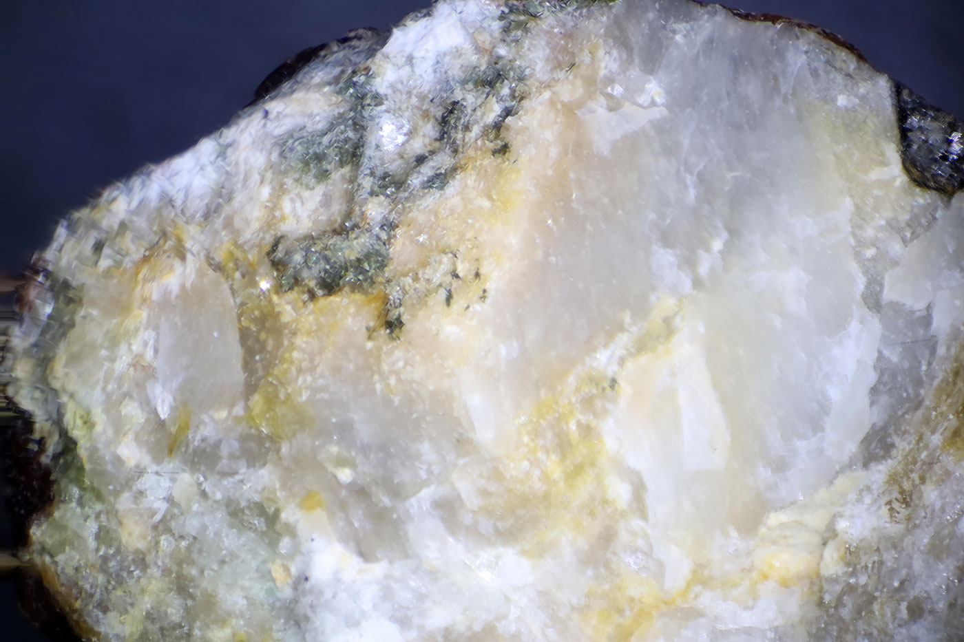 je me demande également si il ne contiendrait pas de la cordiérite (minéral gris bleu en haut à droite des 3ème et 4ème images ?) ... ?